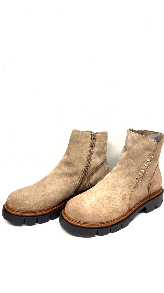 MIZ MOOZ SUEDE BOOTIE SIDE ZIP 37EU / 7US STONE Z-162