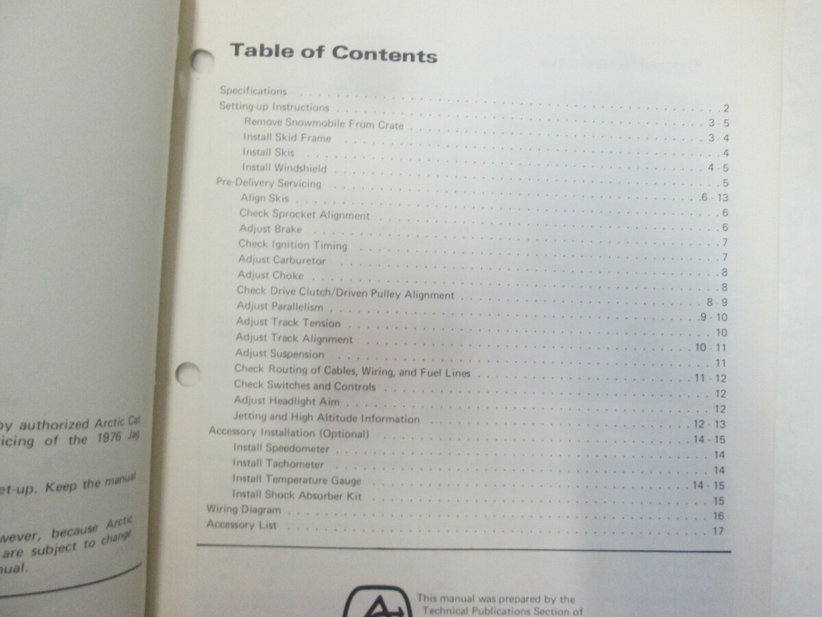1976 Arctic Cat Jag Set Up and Pre-Delivery and similar items