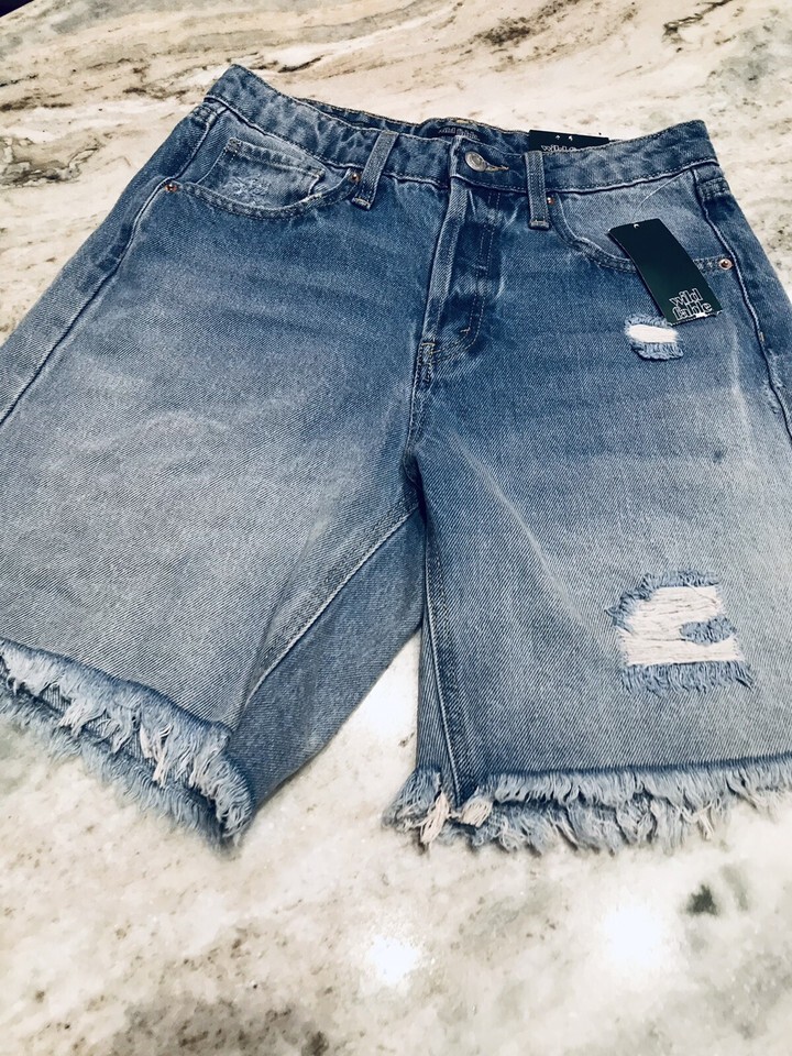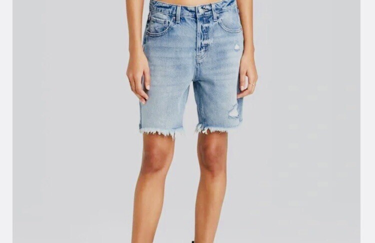 Bermuda-style jean shorts with a wide-leg silhouette. Made of 100% cotton for all-day comfort and breathability. High-rise waistband with belt loops and a fly button closure. Classic five-pocket design for utility. Ripped accents and raw-edge hems complete the style with an edgy look. If you're not satisfied with any Target Owned Brand item, return it within one year with a receipt for an exchange or a refund. Sizing: Womens Material: 100% Cotton Garment Length: Bermuda Closure Style: Fly Button Inseam Length: 8 Inches Rise: High Rise Fit: Relaxed Fit Garment Details: Patch Pocket, Coin Pocket Fabric Weight Type: Heavyweight Fabric Stretch: No Stretch Care and Cleaning: Machine Wash, Tumble Dry. ShipN24hours. MW632