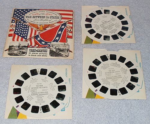 Adopt from Fathertime: Sawyer's View Master Reel Set B-790 War Between the States Civil War, Complete with 21 Stereoscopic Stereo views and four fold brochure, Reel One 1861-62, Reel Two 1863-64, Reel Three 1864-65, Ca. 1960