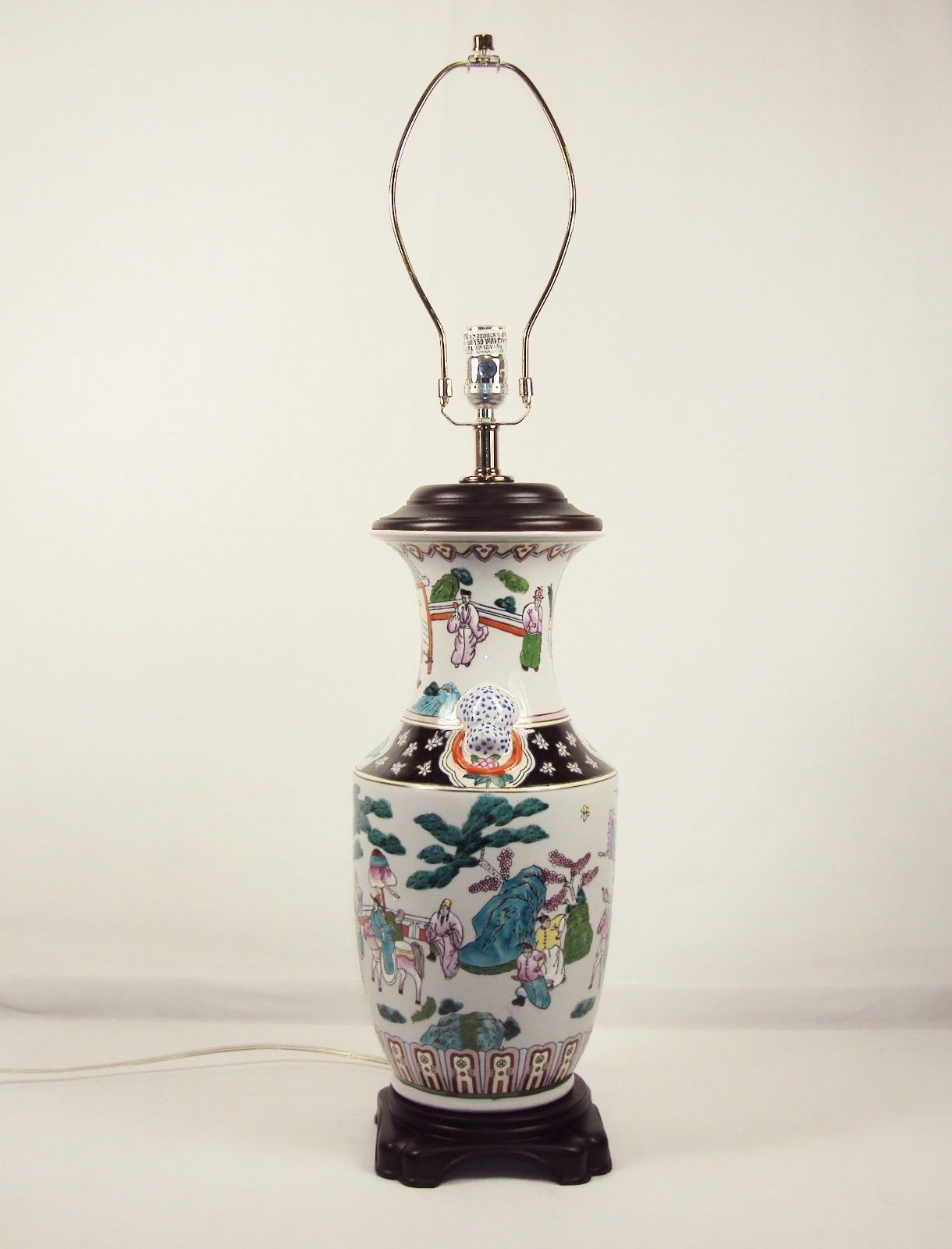 Porcelain Table Lamp ~ Hand Painted Chinese Village Scene (No Shade) #2840440