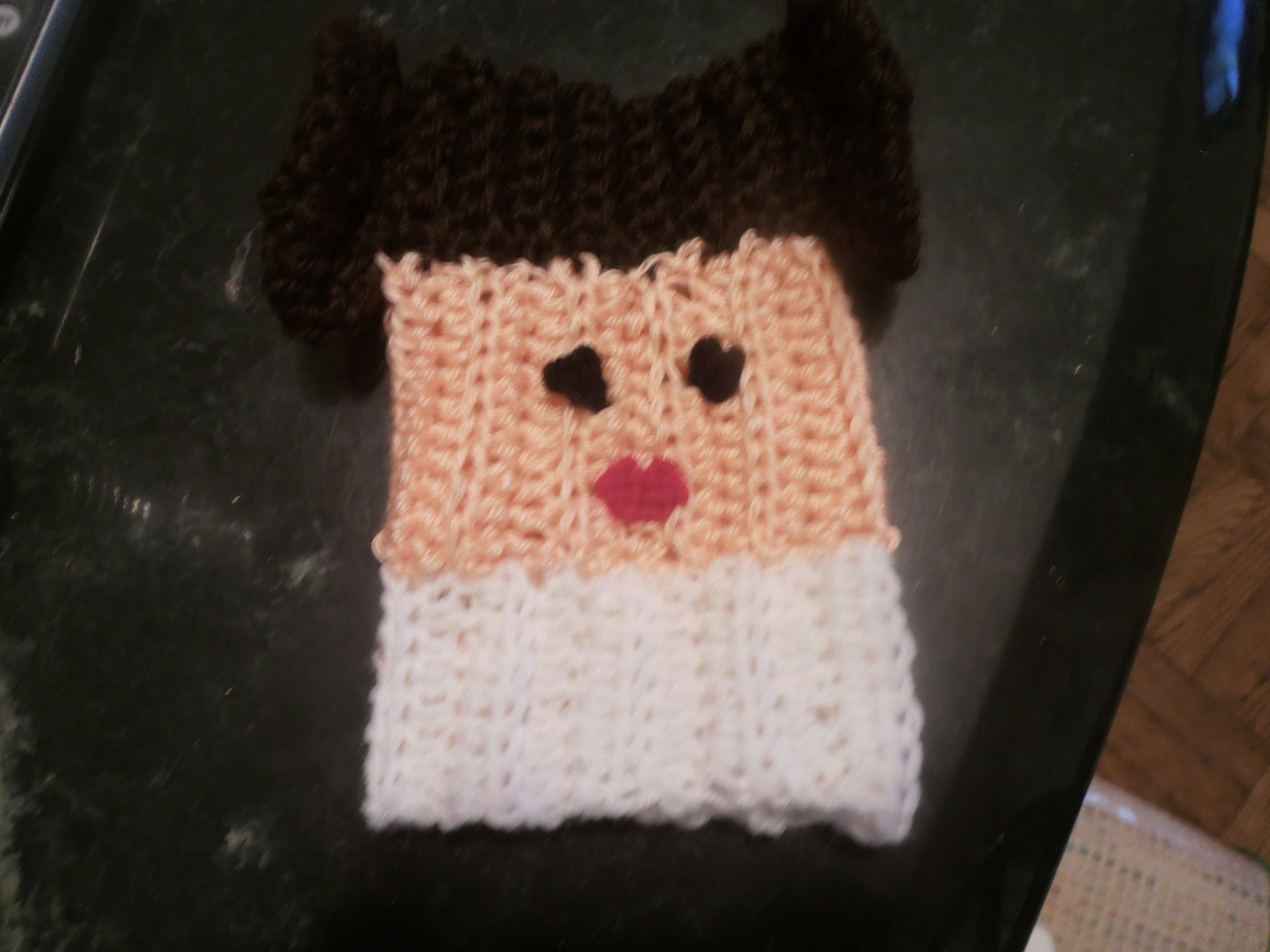 Hand crocheted boot cuffs for girls. Princess Leia design. 7" long approx. 9"-12" width, depending on size needed. Can make 2T-10T. white with peach face, brown hair. Hand wash only, lie flat to dry. Sits on top of boot area. Cute, fun gift for the star wars fan! Shipping time 7-9 working days, First Class USPS. Email me for sizing. Thanks!