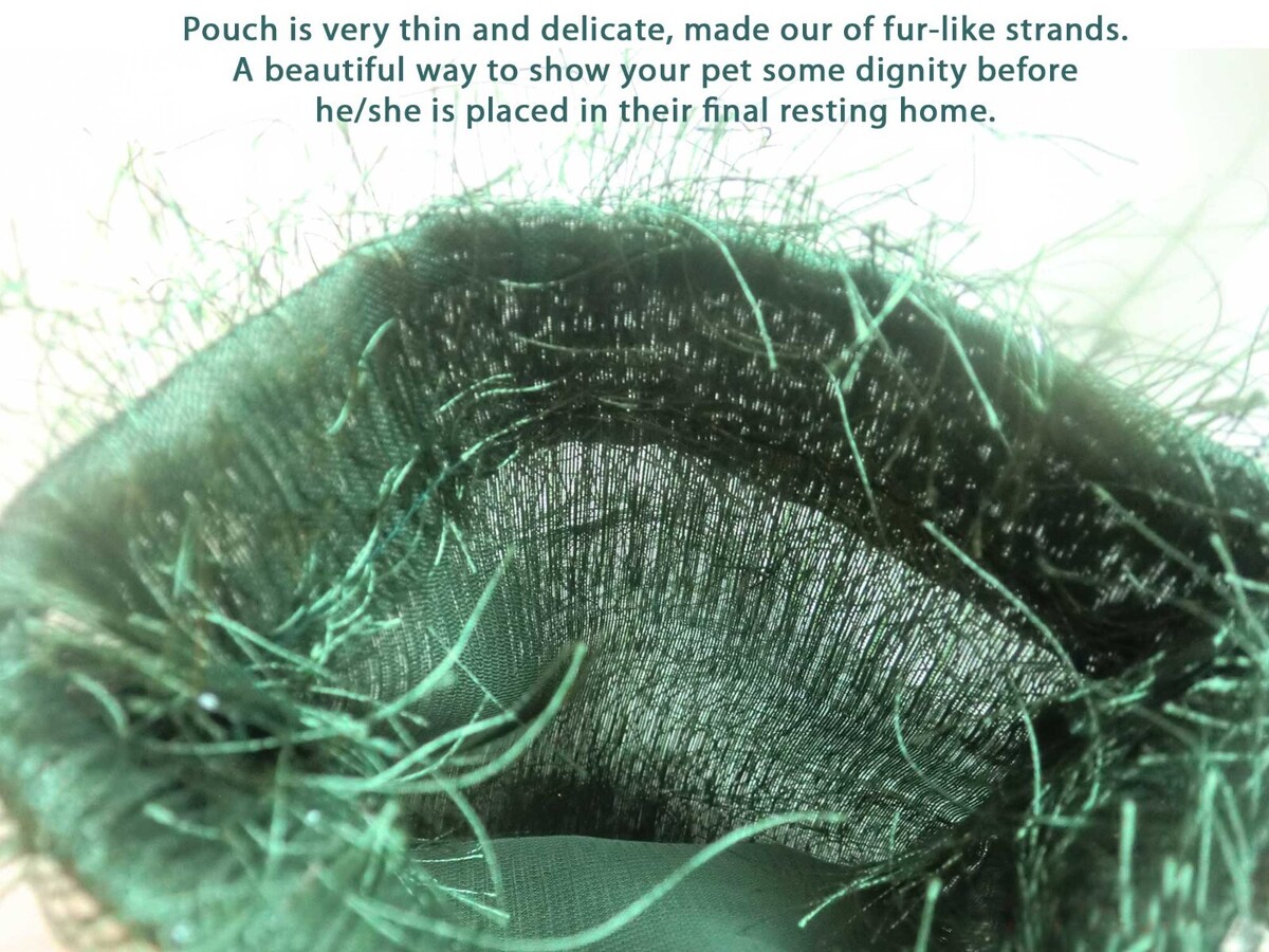 Shimmer Pet Cremation Pouch before placing them in their final resting home.