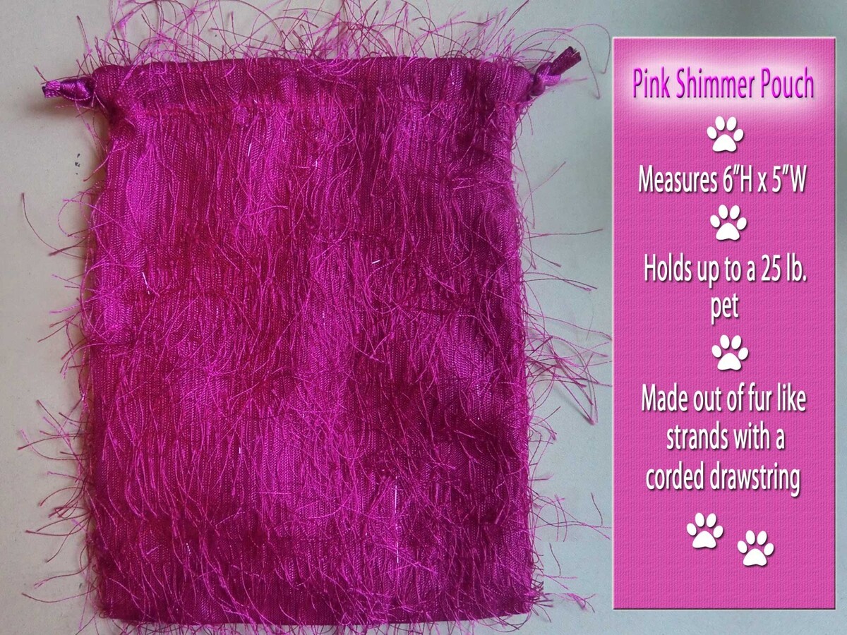 The pouch measures 5"W x 6"H and can accommodate pets that weighed up to 25 lbs (based on live weight).
