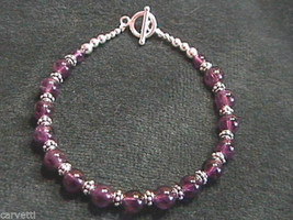 Amethyst and Sterling Silver Bali Bead Bracelet - 7.5"