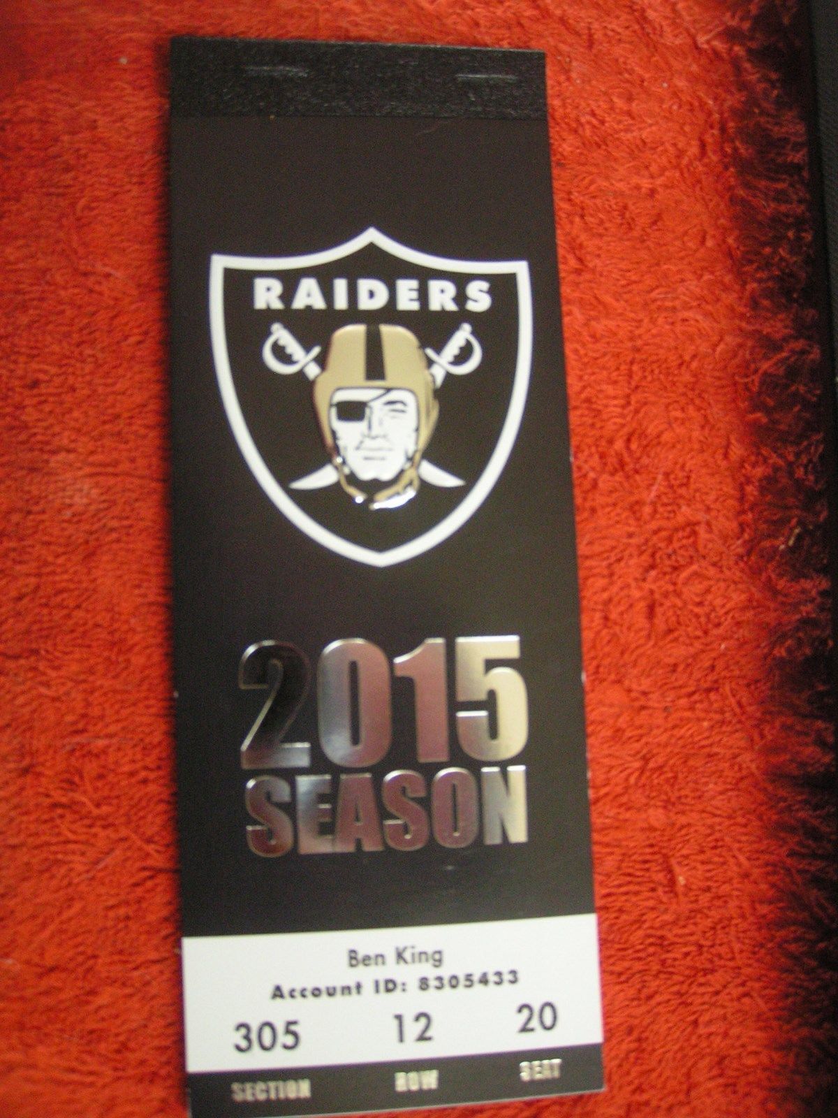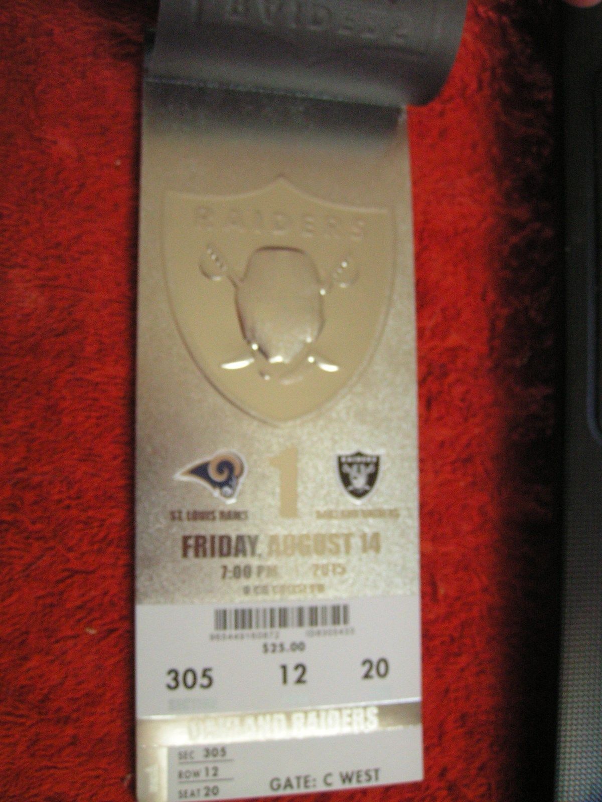 You are buying 1 brand new ticket taken right from a season ticket holder book. The Raiders silver emblem is raised!