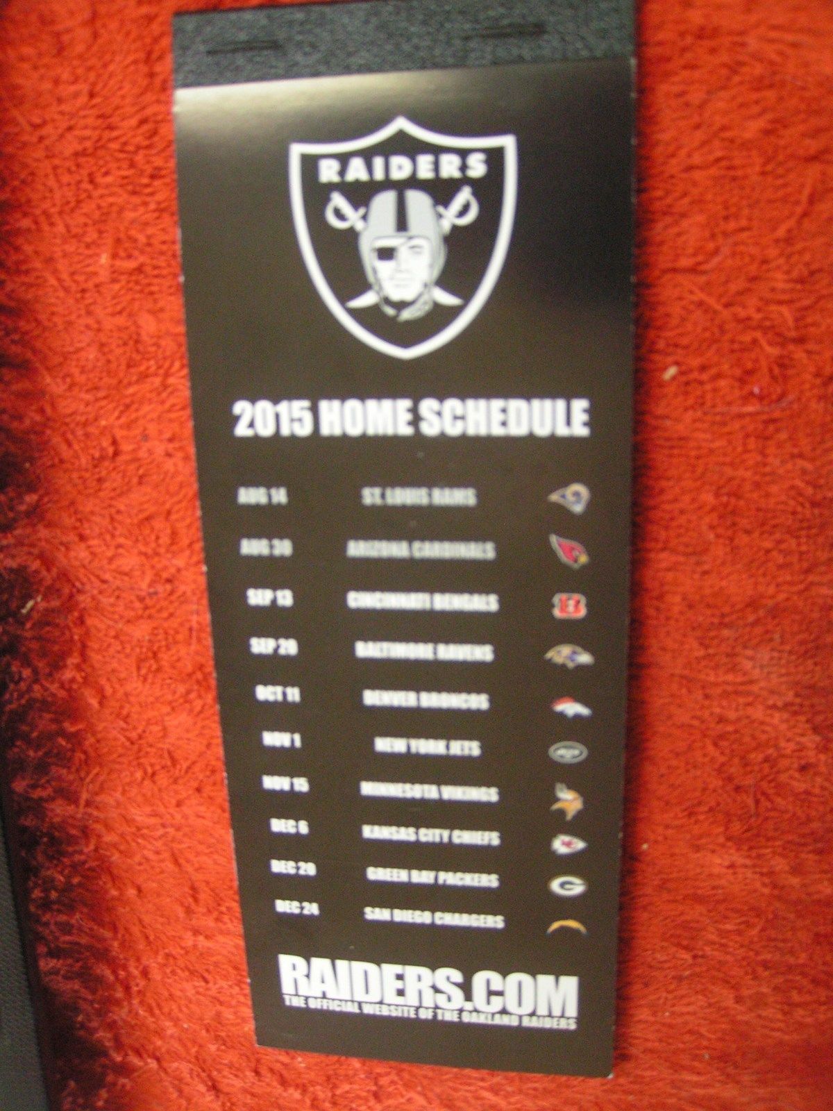 NFL 2015 Oakland Raiders Full Unused Souvenir/Collectible