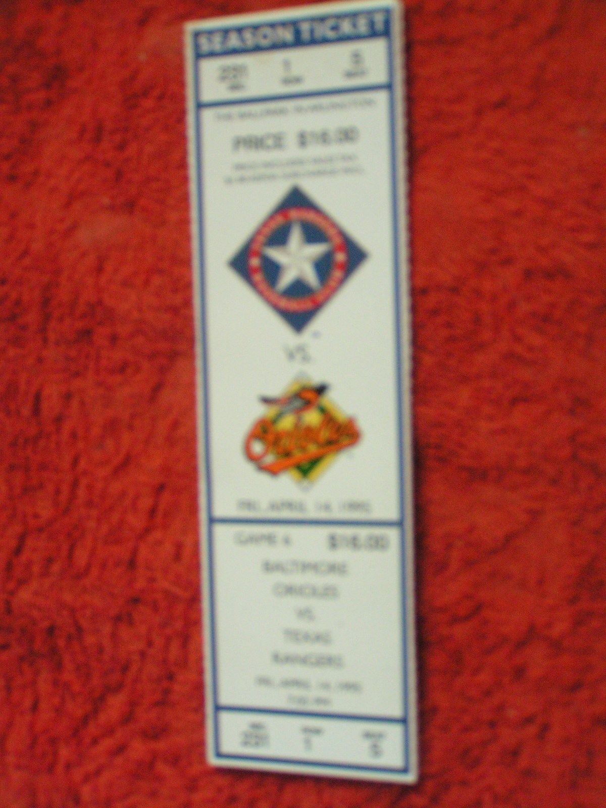 MLB 1995 Texas Rangers Ticket Stub Vs. Baltimore Orioles 4/14/95