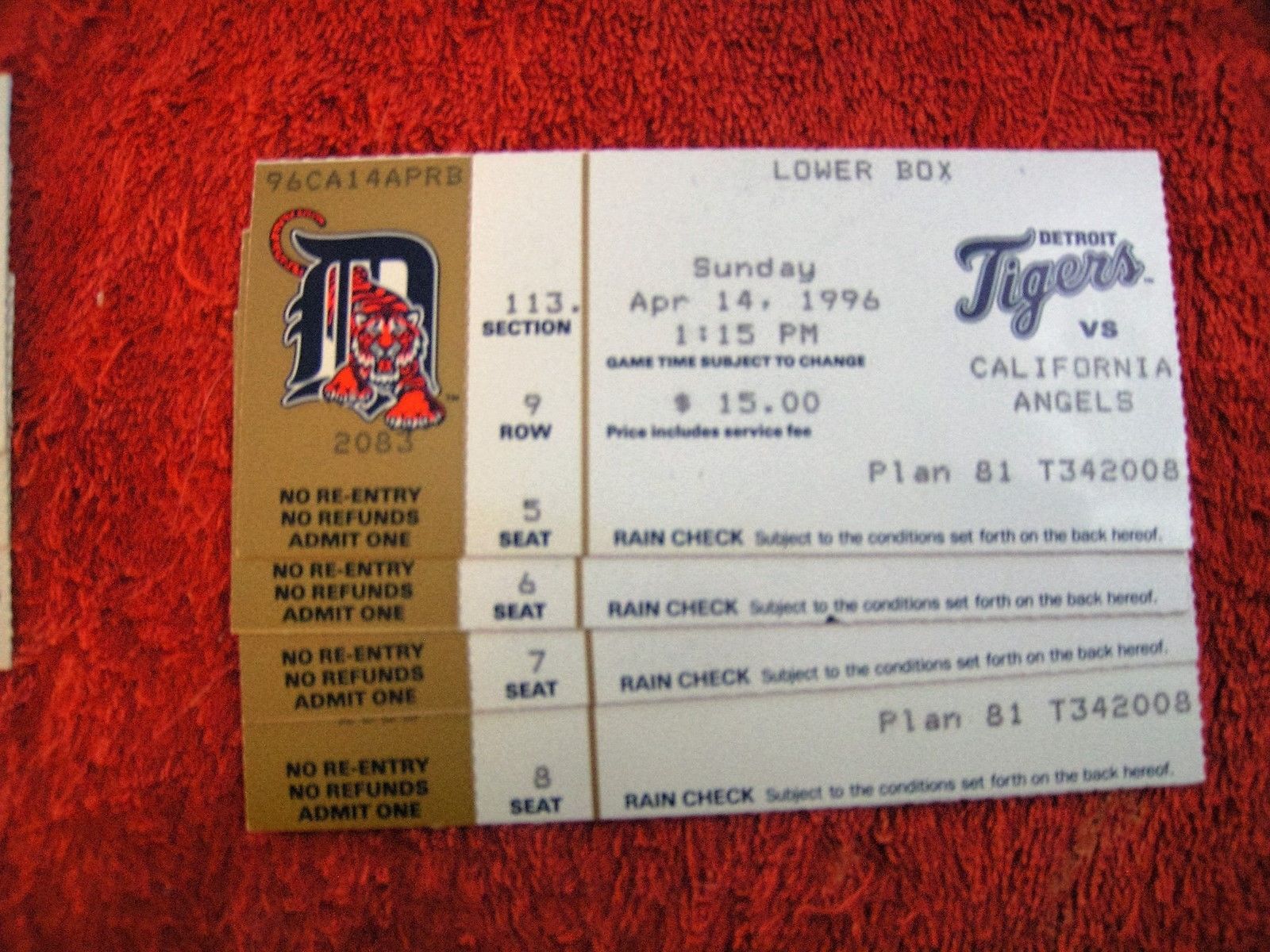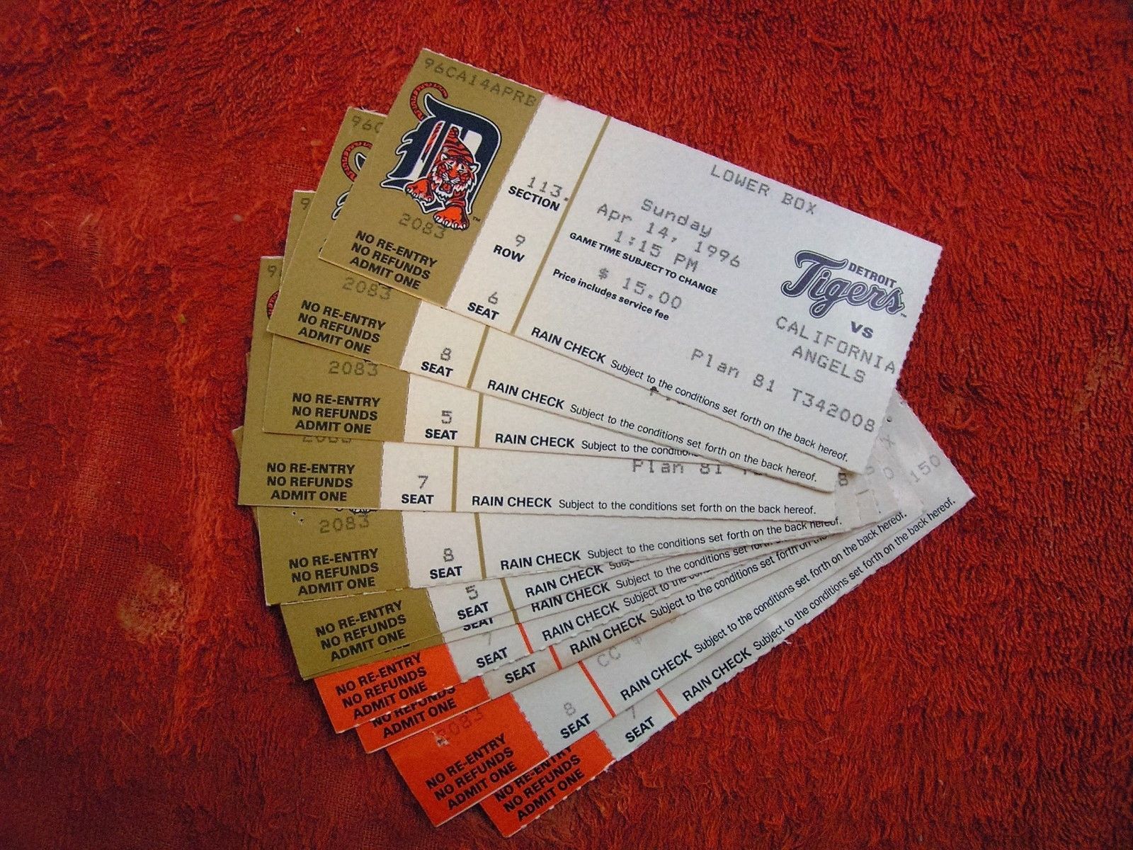 MLB 1995 and 1996 Detroit Tigers Collectible/Souvenir Ticket Stubs $4.99 Each!