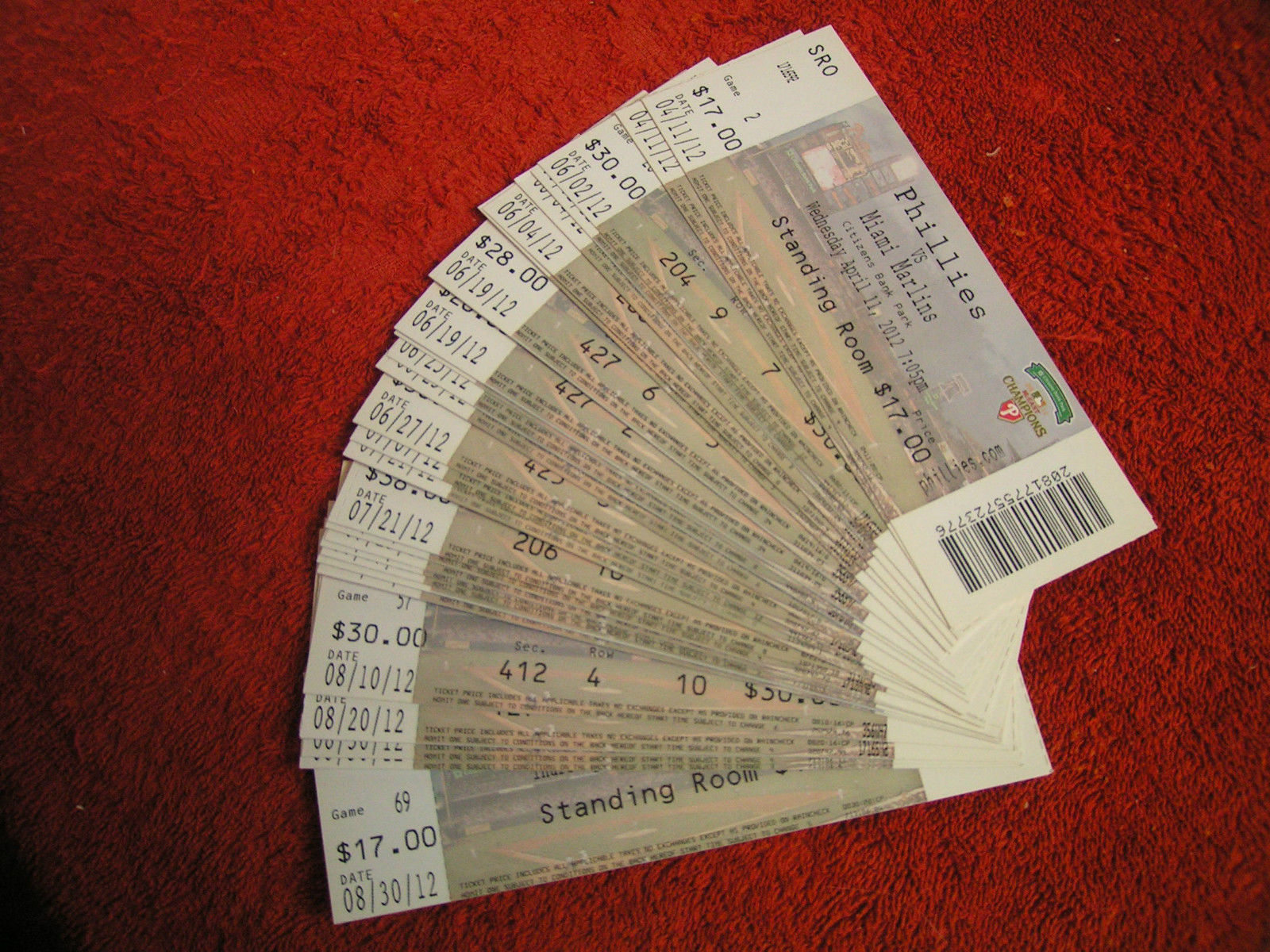 MLB Philadelphia Phillies 2012 2013 Ticket Stubs (Mets, Red Sox, Miami)