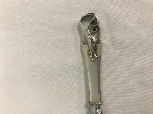 Sterling silver hollow handle with stainless blade DINNER KNIFE 9 3/4" by CARL POUL PETERSEN. It is monogrammed (although not showing in stock photo; monos vary) and is in excellent condition.
