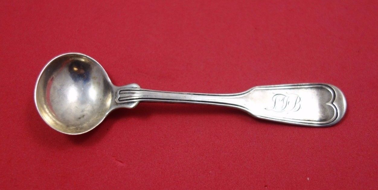 California Coin Silver by CC S Shreve Salt Spoon Master Threaded, 3 7/8". It is monogrammed (monos vary) and is in excellent condition.