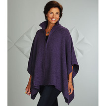 Look stylish and keep warm wearing this knit Purple Quarter-Zip Wrap with stand-up collar and side-button secured. It's soft, nubby boucle' knit will help you embrace the colder temperatures. One Size.