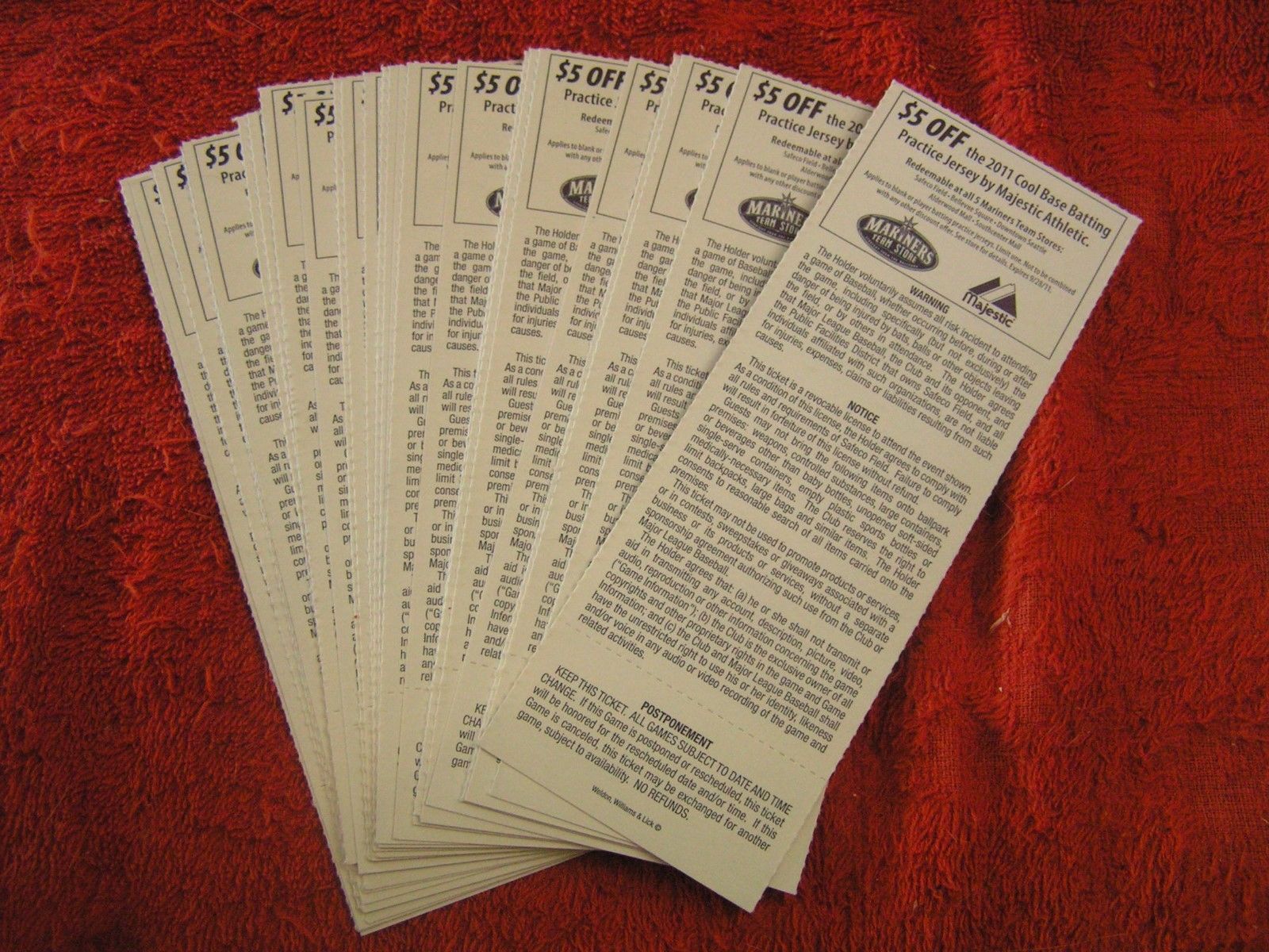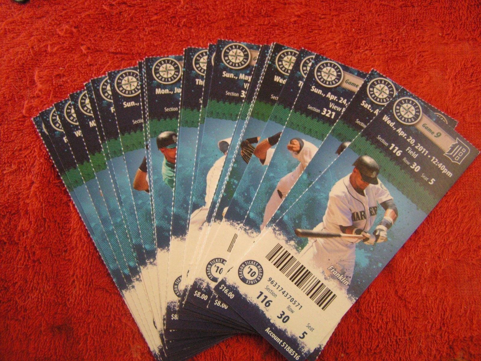 MLB 2011 Seattle Mariners Full Unused Ticket Stubs