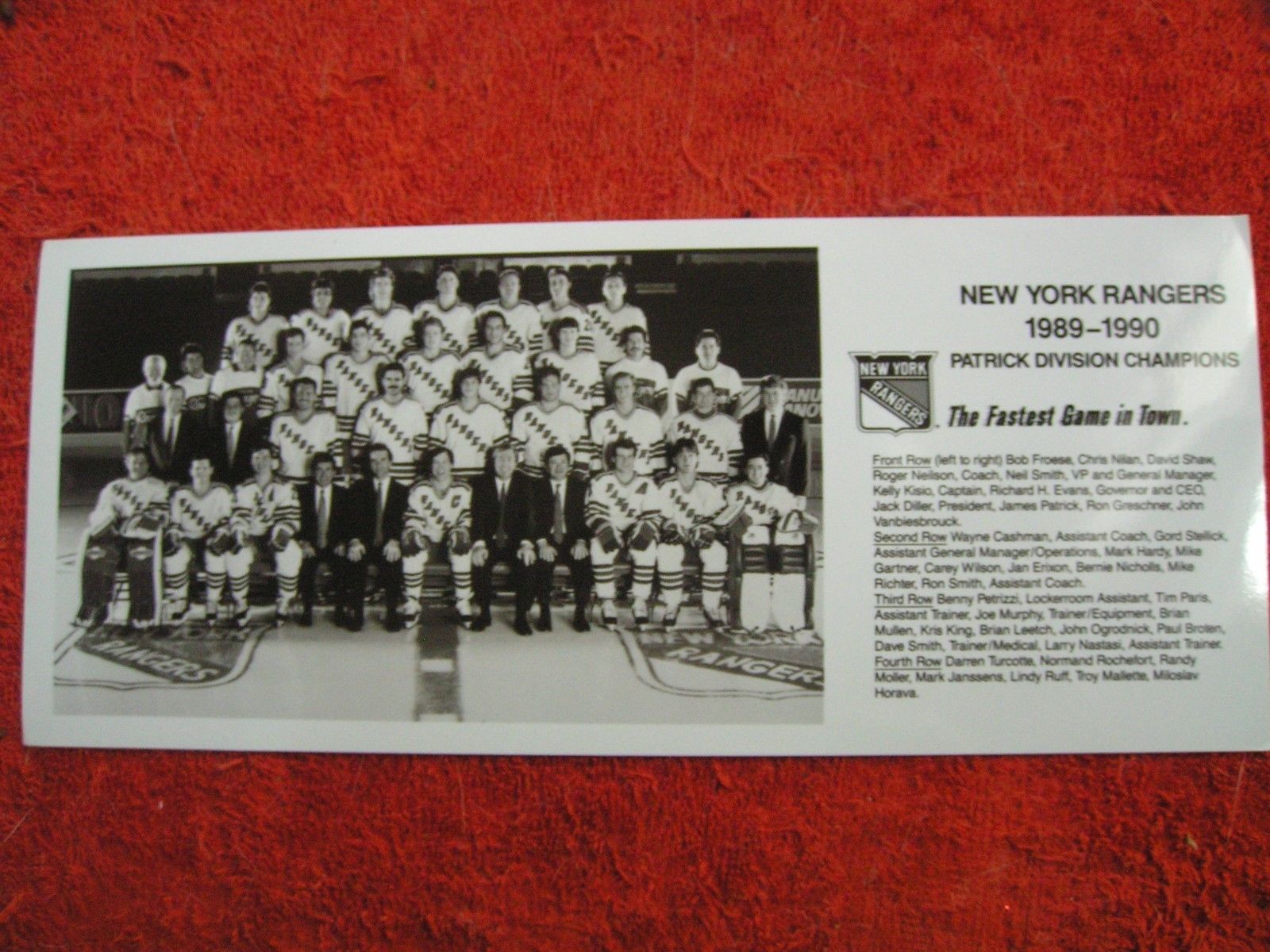 NHL 1989-90 NY Rangers Patrick Division Champs Team Picture With Team List MSG