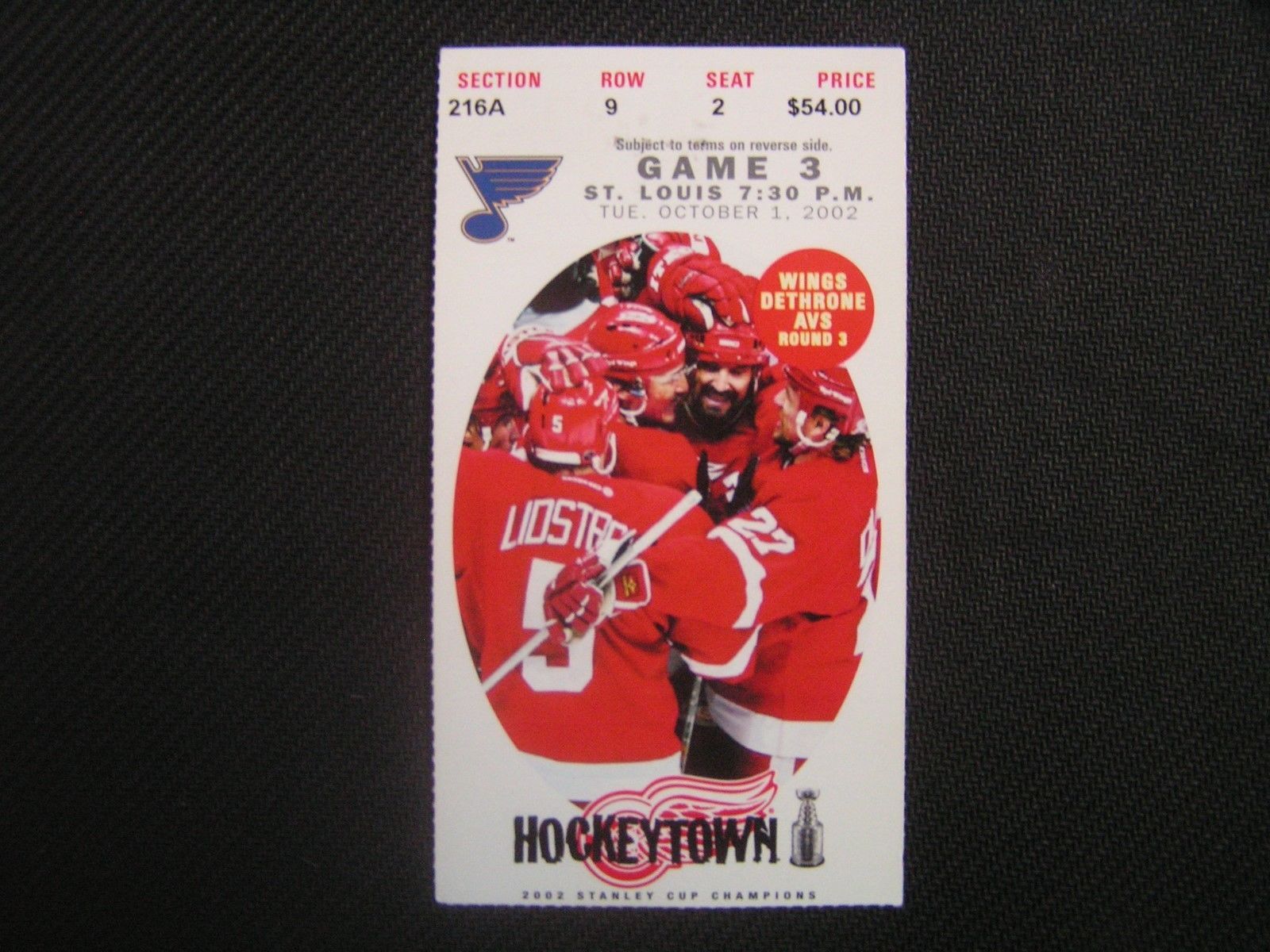 Stanley Cup Champion 2002-03 Detroit Red Wings Ticket Stub Vs St. Louis 10-01-02