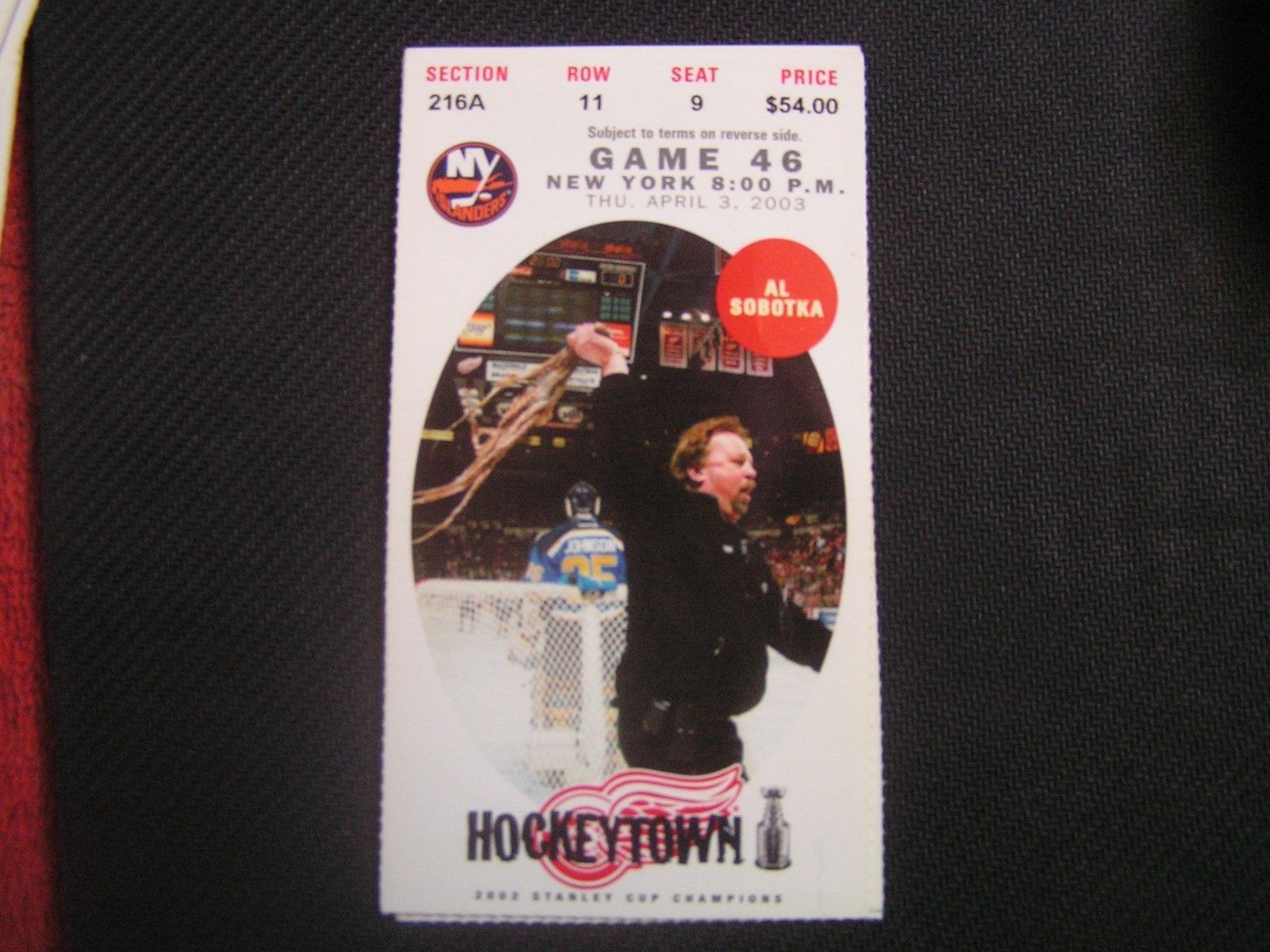 Stanley Cup Champion 2002-03 Detroit Red Wings Ticket Stub NY Islanders 04-03-03