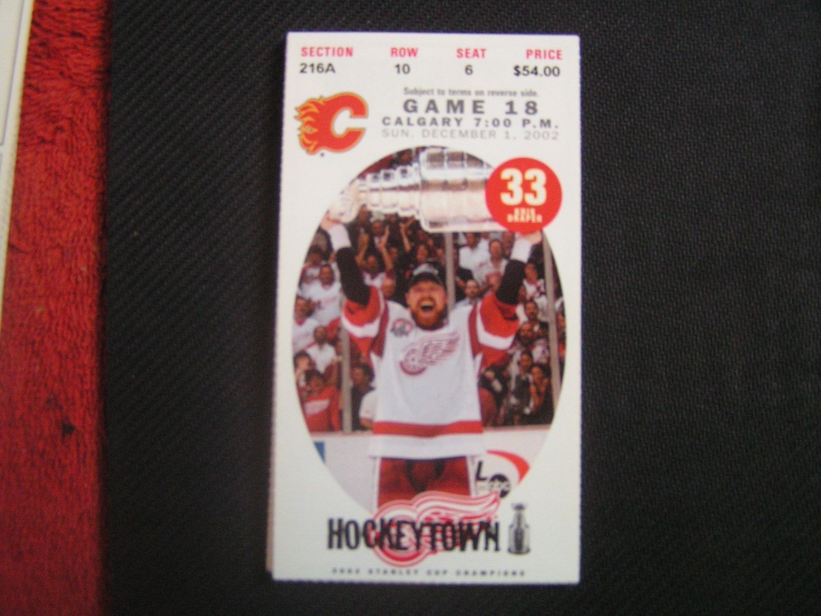 Stanley Cup Champions 2002-03 Detroit Red Wings Ticket Stub Vs.Calgary 12-01-02