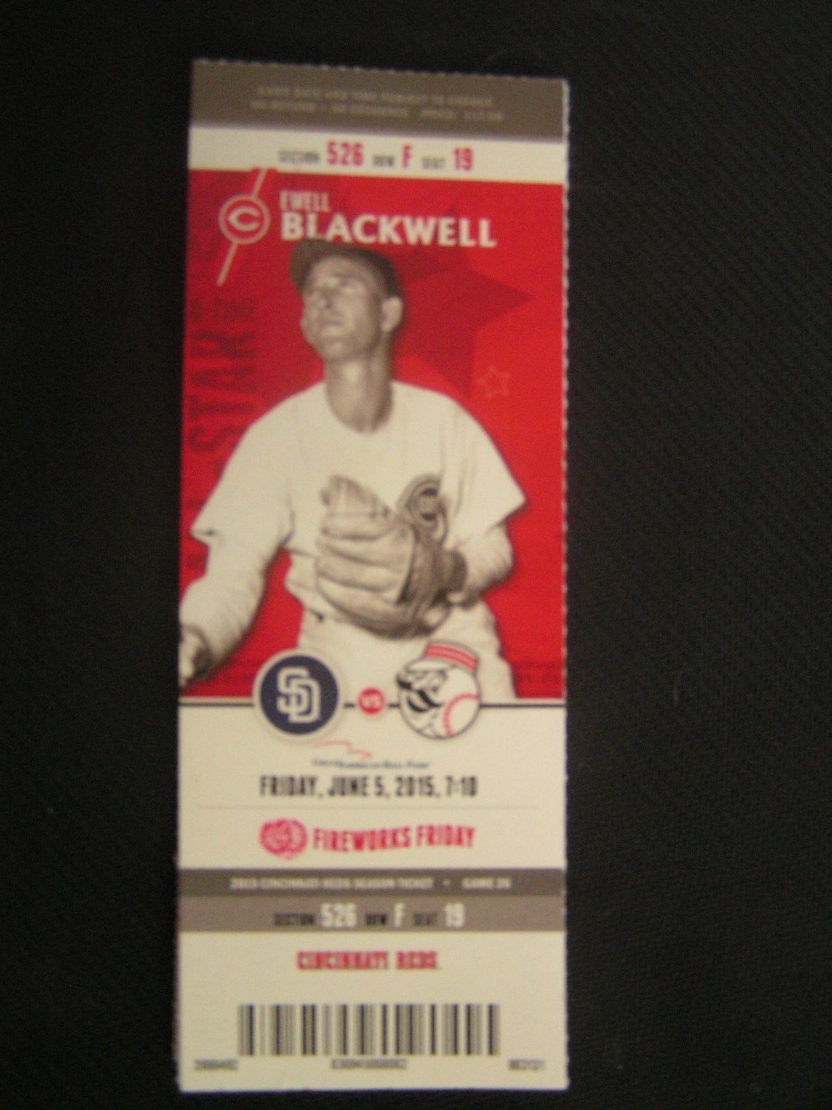MLB 2015 Cincinnati Reds Full Unused Ticket Stub Vs San Diego 6/5/15