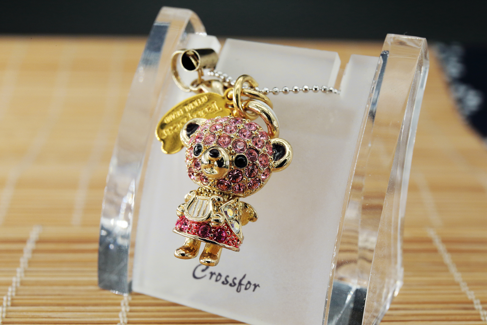 Crossfor Teddy Bear Pink Crystal Necklace Angel Teddy-22PK Japan