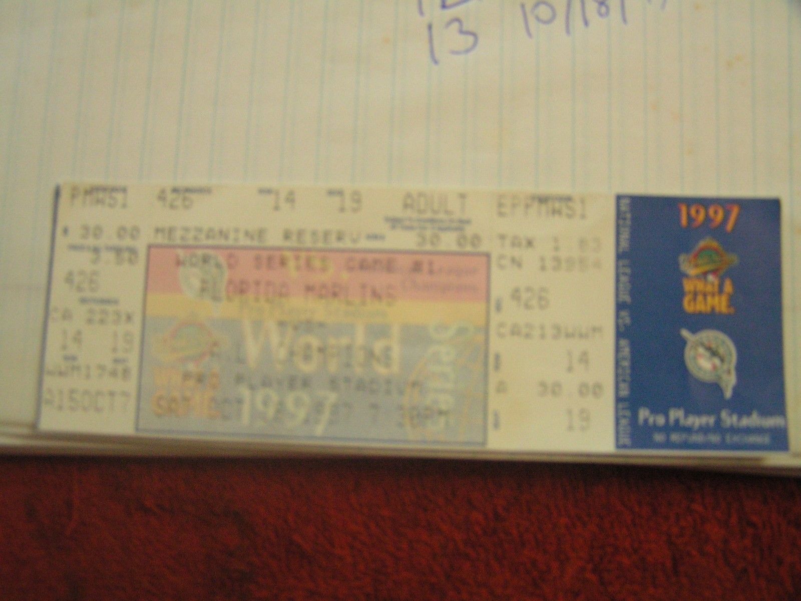 MLB Florida Marlins World Series AL Champions Game # 1 10/18/97 Ticket Stub