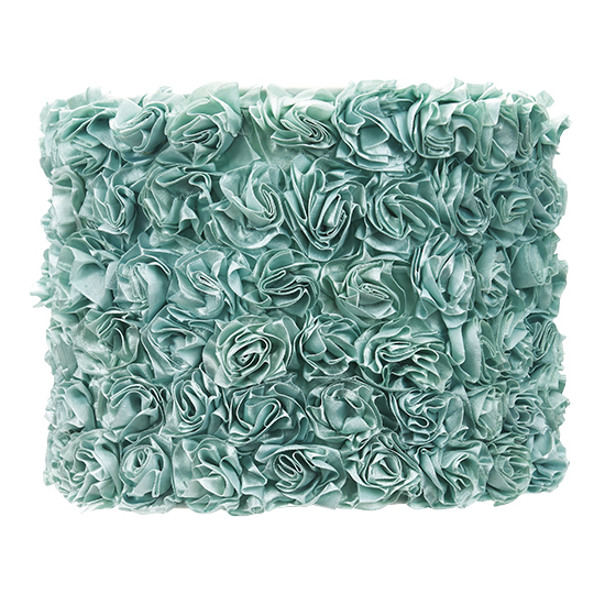 The lamp features large crystal flower bases and Turquoise Rose garden Drum Shade.Large turquoise blue Rose Garden drum shade. 12" X 12" X 10"