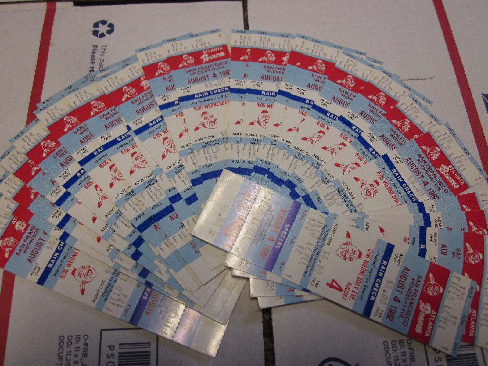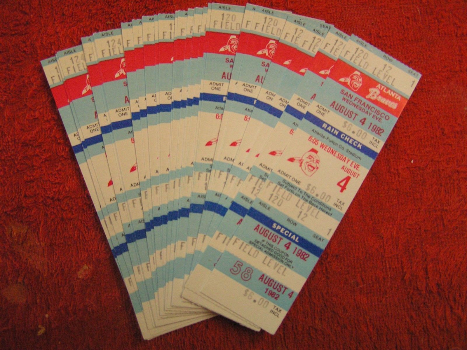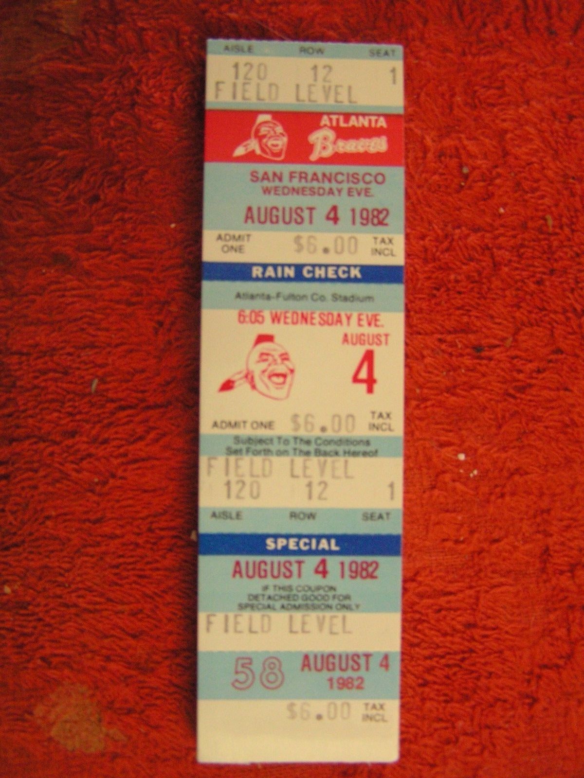MLB San Francisco Giants @ Atlanta Braves 8/4/1982 Unused Full Ticket Stubs
