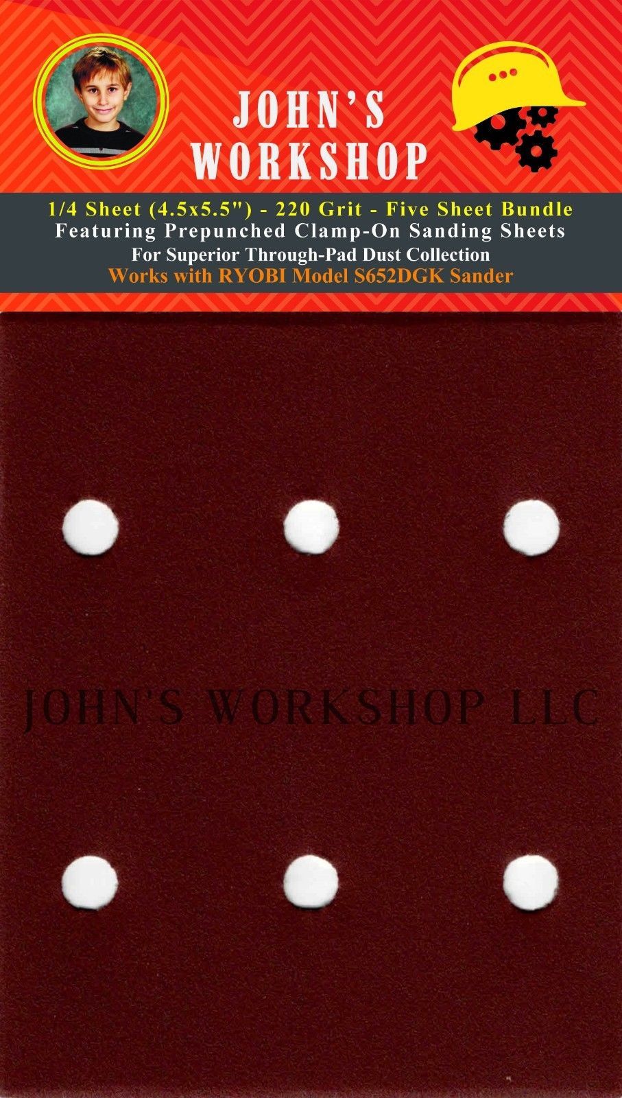 RYOBI S652DGK - 1/4 Sheet (4.5x5.5") - 220 Grit - PrePunched - 5 Sheet Sandpaper Bundle