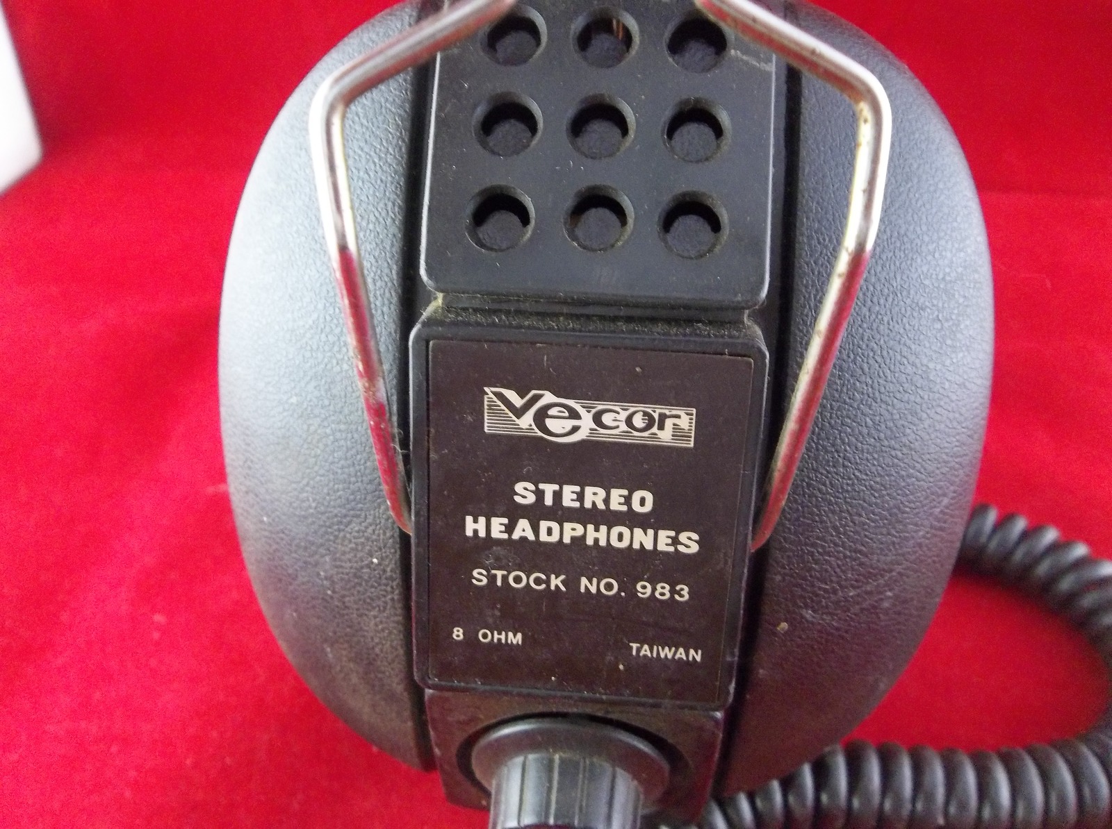 Vintage Vecor Black Mono Stereo Headphones Stock No 983
