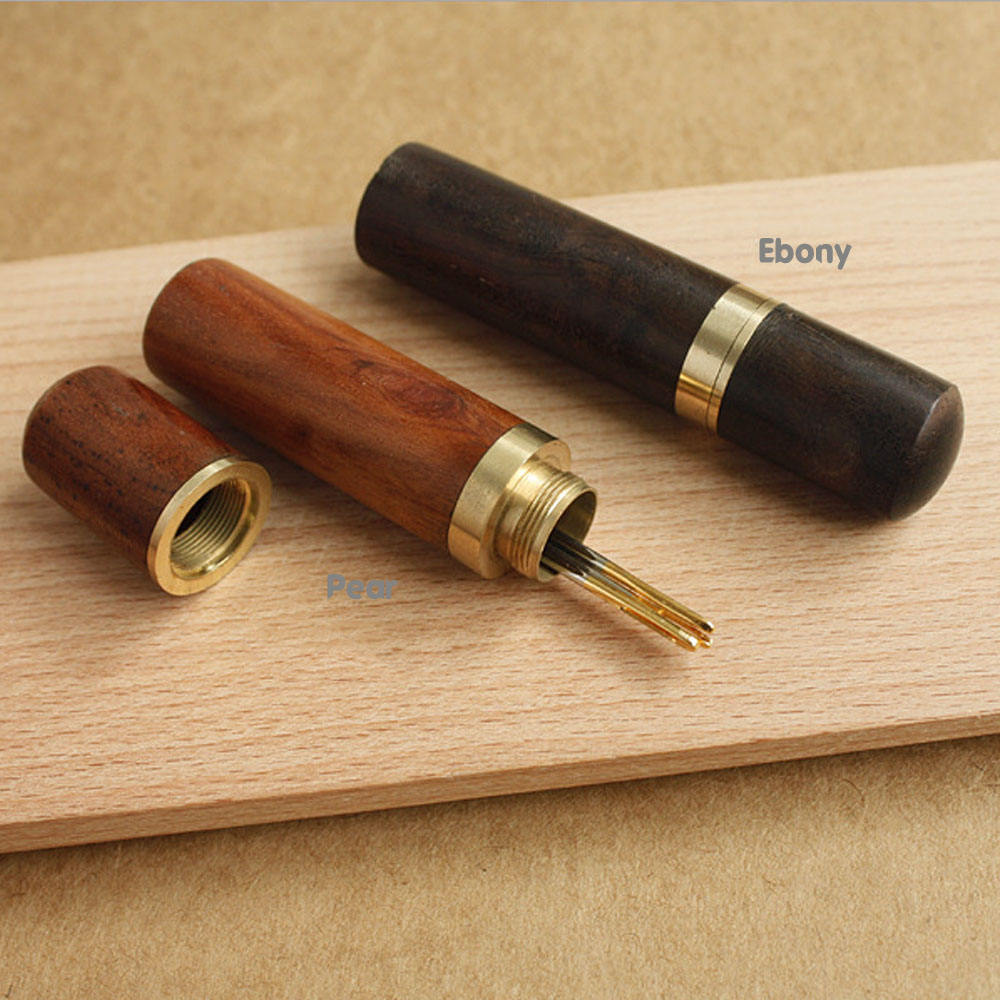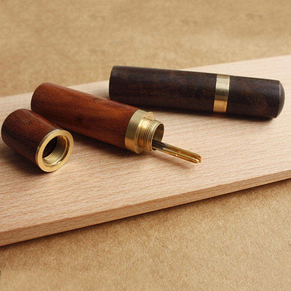 Sewing Knitting Needles Case Boxes Storage 18x83mm Wood Box Leather Craft DIY