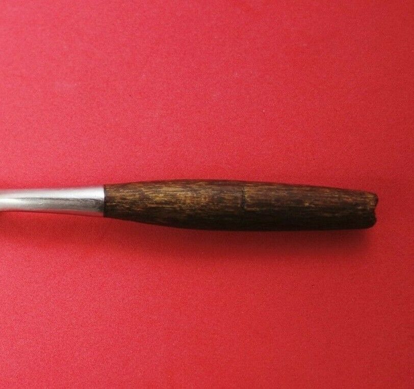 Stainless steel with teak wood handle Salad Fork 3-Tine 6 5/8" in the pattern Fjord by Dansk. It is not monogrammed and is in very good estate condition.