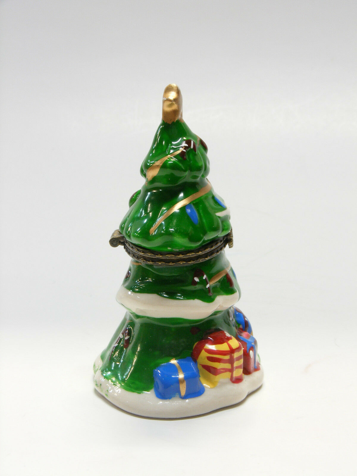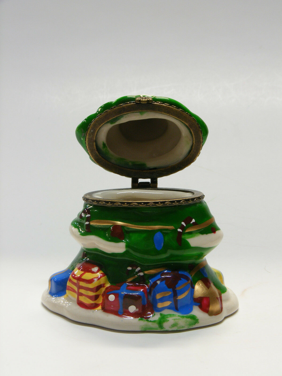 BRAND NEW never displayed Christmas Village CERAMIC HANDPAINTED DECORATED CHRISTMAS TREE TRINKET BOX CHRISTMAS DECORATION.