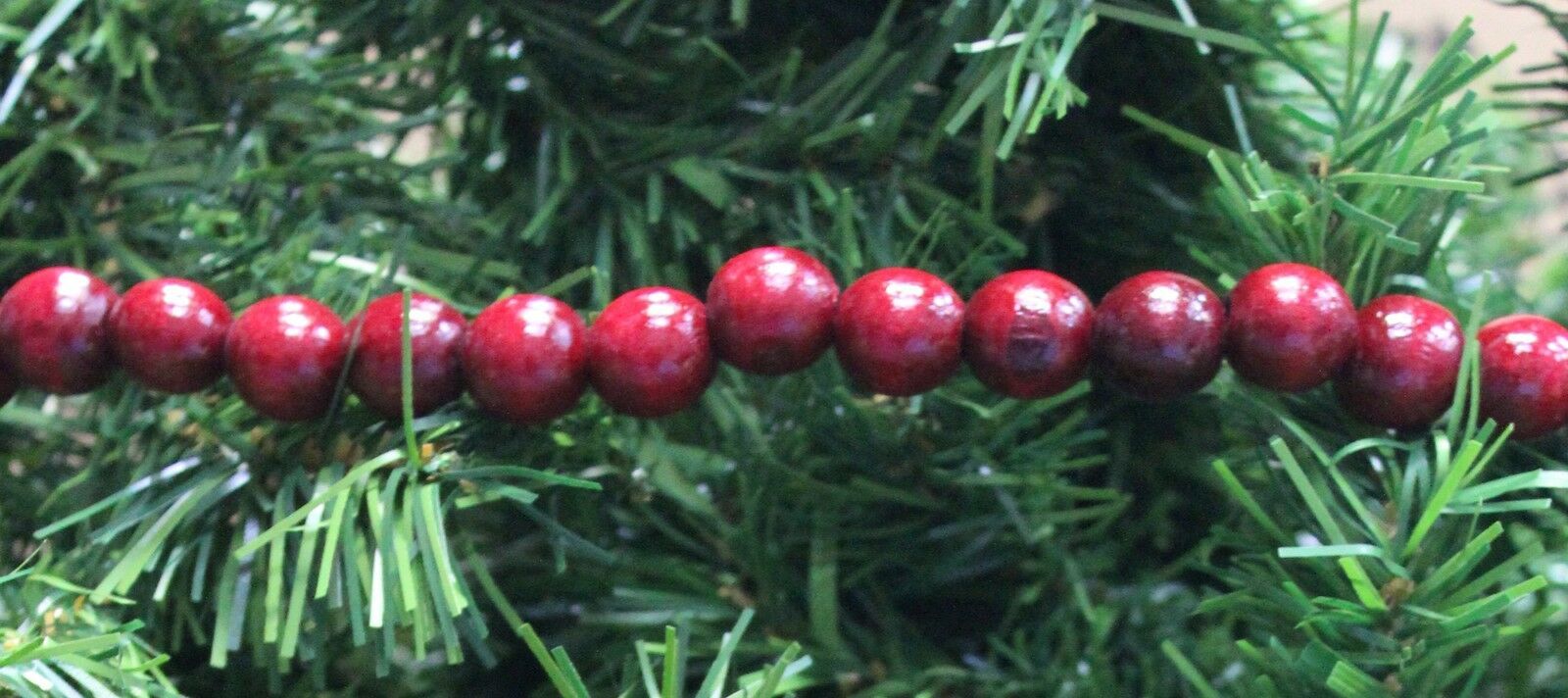 KURT S. ADLER 9' LONG 1/2" BURGUNDY WOOD BEAD GARLAND CHRISTMAS TREE GARLAND