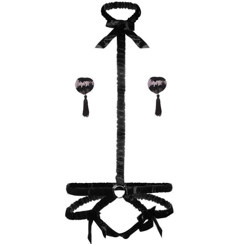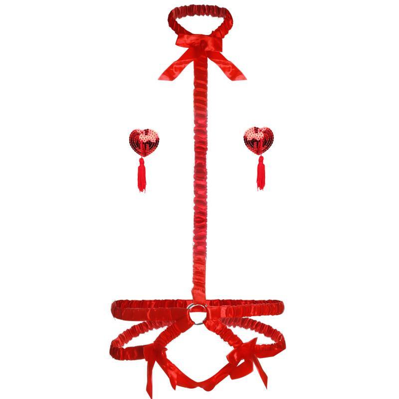 Kick things up a notch with the bold and enticing Satin Choker Belt with Nipple Tassels that features an attached choker and two nipple tassels.