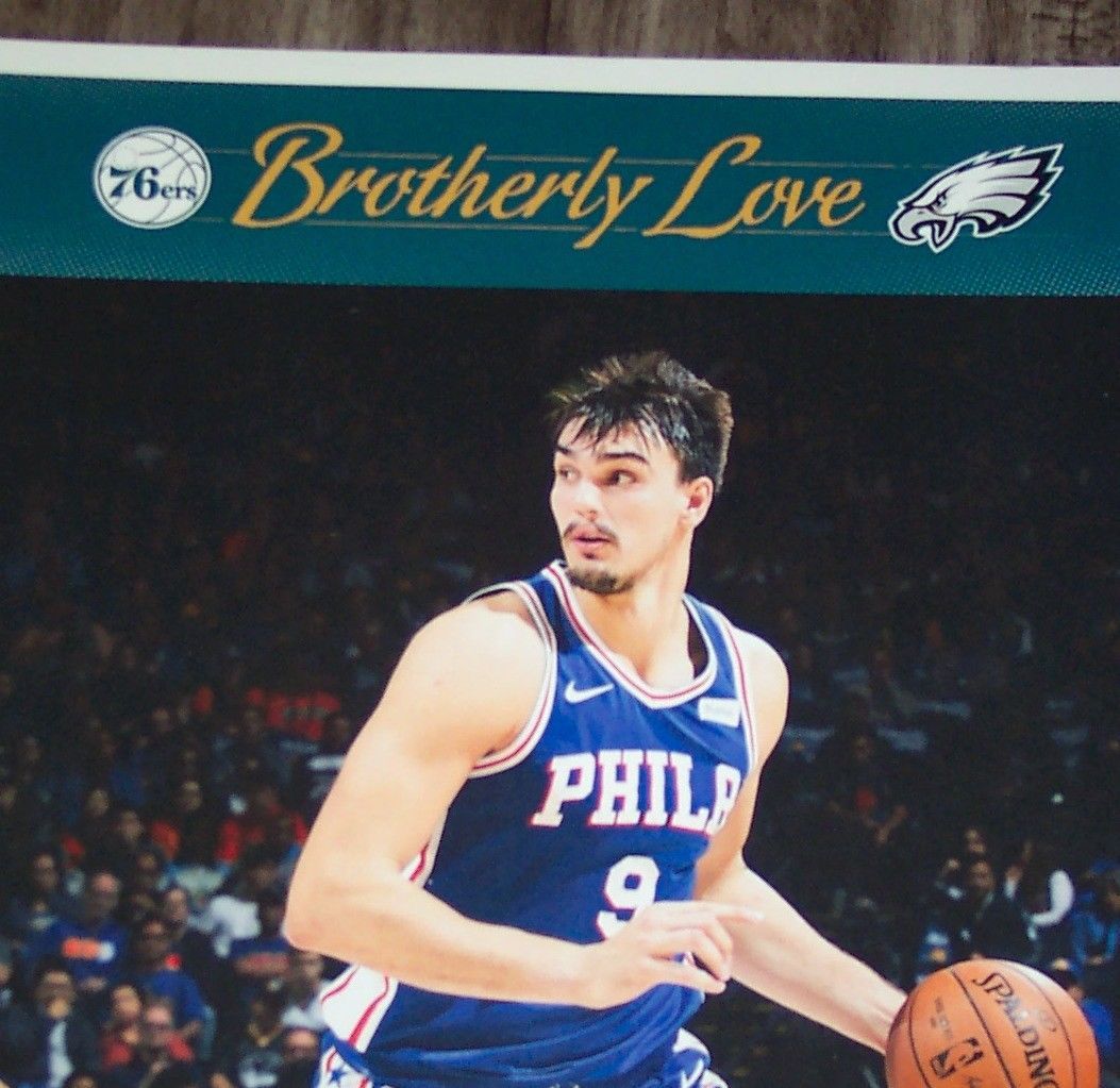 This is a PHILADELPHIA 76ERS SIXERS and PHILADELPHIA EAGLES BROTHERLY LOVE" DARIO SARIC GAME EXCLUSIVE PROMO POSTER PRINT. It is NEW. It Measures 8.5 Inches By 11 inches. Printed on a nice heavy stock paper. This was an exclusive given out at a game. Not available in stores. It is from February 6th 2018. Two days after the Super Bowl. It is part of the "Brotherly Love" Campaign the 76ers Did the week before and after the Super Bowl to Support The Eagles. The entire rim of the stadium was green and this poster was part of the promo. Great Piece of Philadelphia Sports History. Would look great framed. Great for a Bedroom, Game Room or Man Cave. It has the full rosters on the back. D5AG