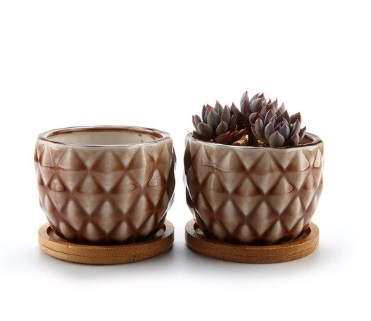 Ceramic Pineapple Succulent Pot Set with FREE Bamboo Trays White Pack of 2