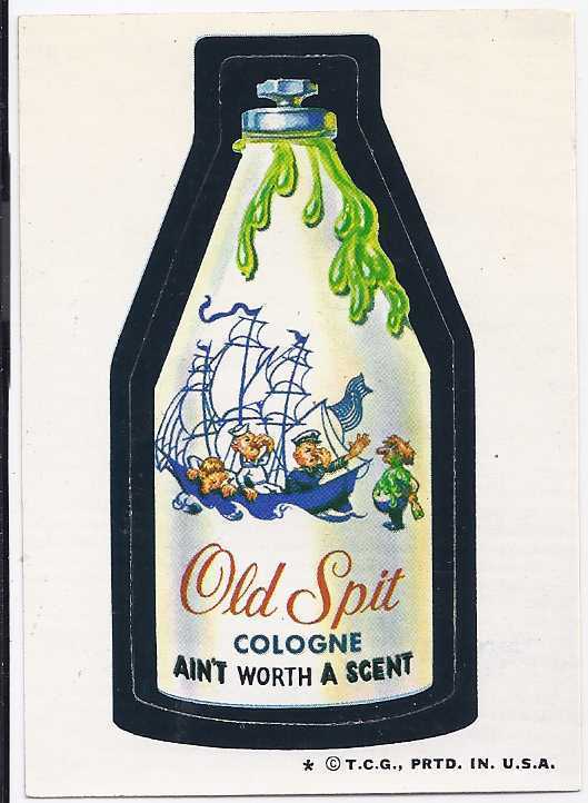 This is a 1973/4 5th Series Tan Back TOPPS Wacky Package Sticker, OLD SPIT Cologne .