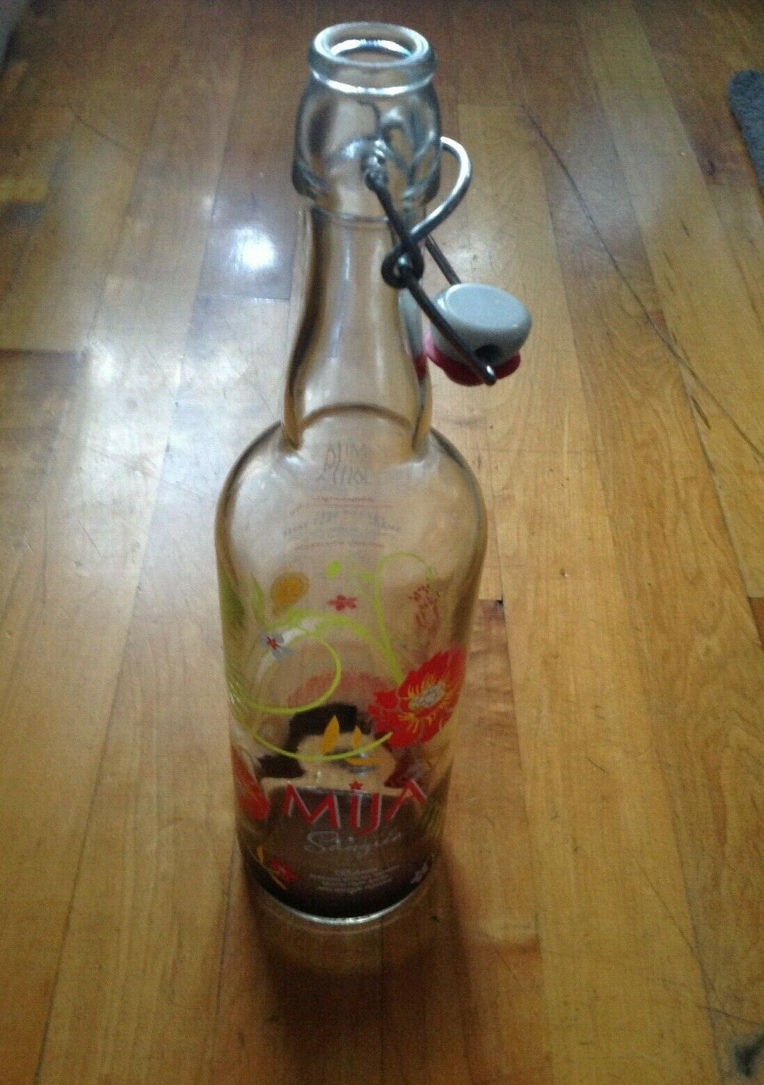 Mija Sangria Empty Glass Decanter Liter Bottles with Cork Stoppers ,pre owned in great condition barley used and wil be shipped fast