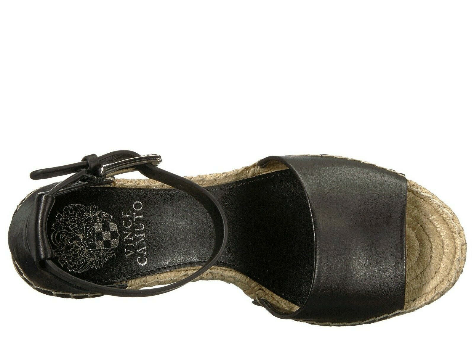 Vince Camuto Leera Ankle Strap Espadrille Wedge Sandals, Black Multiple Sizes