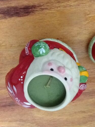 Temptations creative work, hand painted whimsical Santa, filled with pine scented candle to burn 72 hours and keep for years to come as a decorative piece to your winter Christmas creations! Great as gifts-Santa comes packaged in it's on gift box it's no wrapping required! Get a jump on Gifts this year by starting with this adorable Santa for yourself and many others on your gift list! Santas are in shipping boxes, unopened, new in gift box.