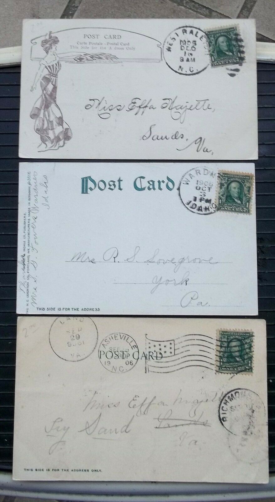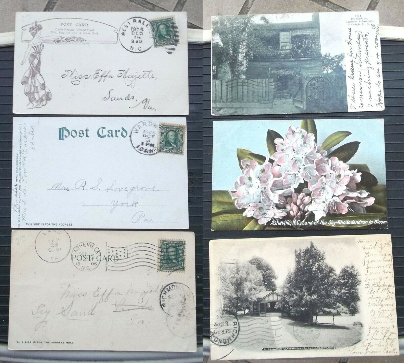 Asheville Raleigh N Carolina UDB 1906 Undivided Back 3 Postcards 4 Cancels