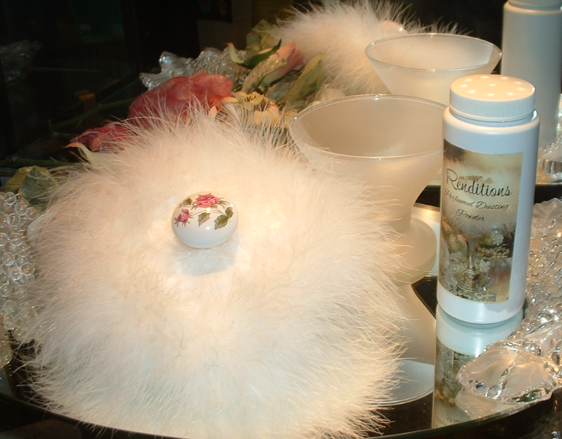 Dusting Powder with Puff & Glass Stand |