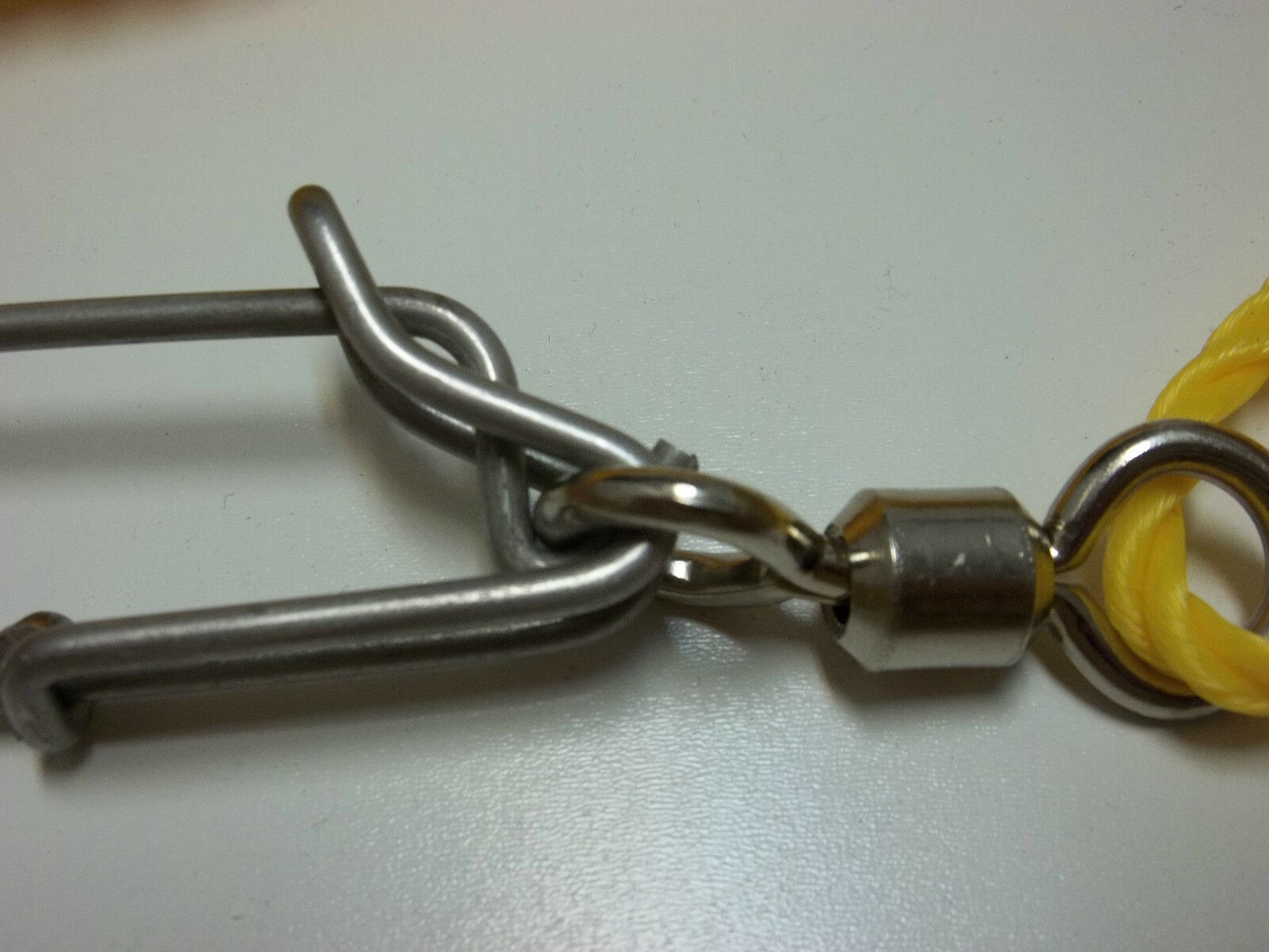 It came on both ends with loops and swivels, one end is a very popular connector snap on (stainless steel) with 8/0 swivel