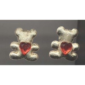 TEDDY BEAR HEART EARRINGS-Red Rhinestone-BFF Jewelry-Puffy GOLD
