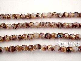 50 4mm Czech Glass Firepolish Beads: Opaque White/Tortoise - Celsian