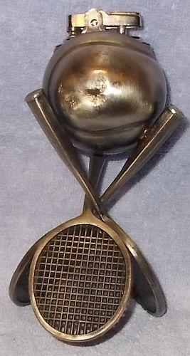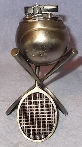 Adopt from Fathertime: Satin Finish White Metal? Tennis Motif Table Lighter, Marked Japan