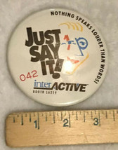 Vtg Beautiful Just Say It 042 Inter Active Pin Back Metal Button Birds Parrots