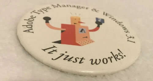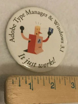 Vtg Beautiful Adobe Type Manager Windows 3.1 It Just Works!Pin Back Metal Button