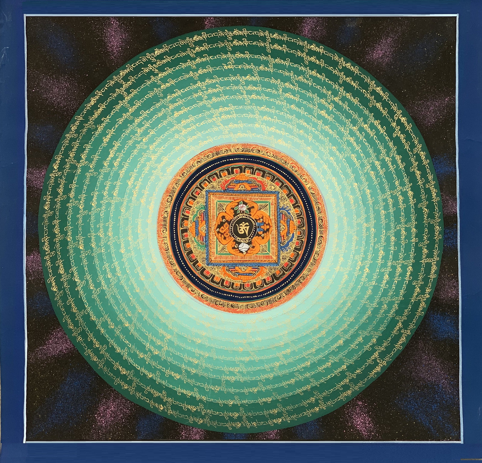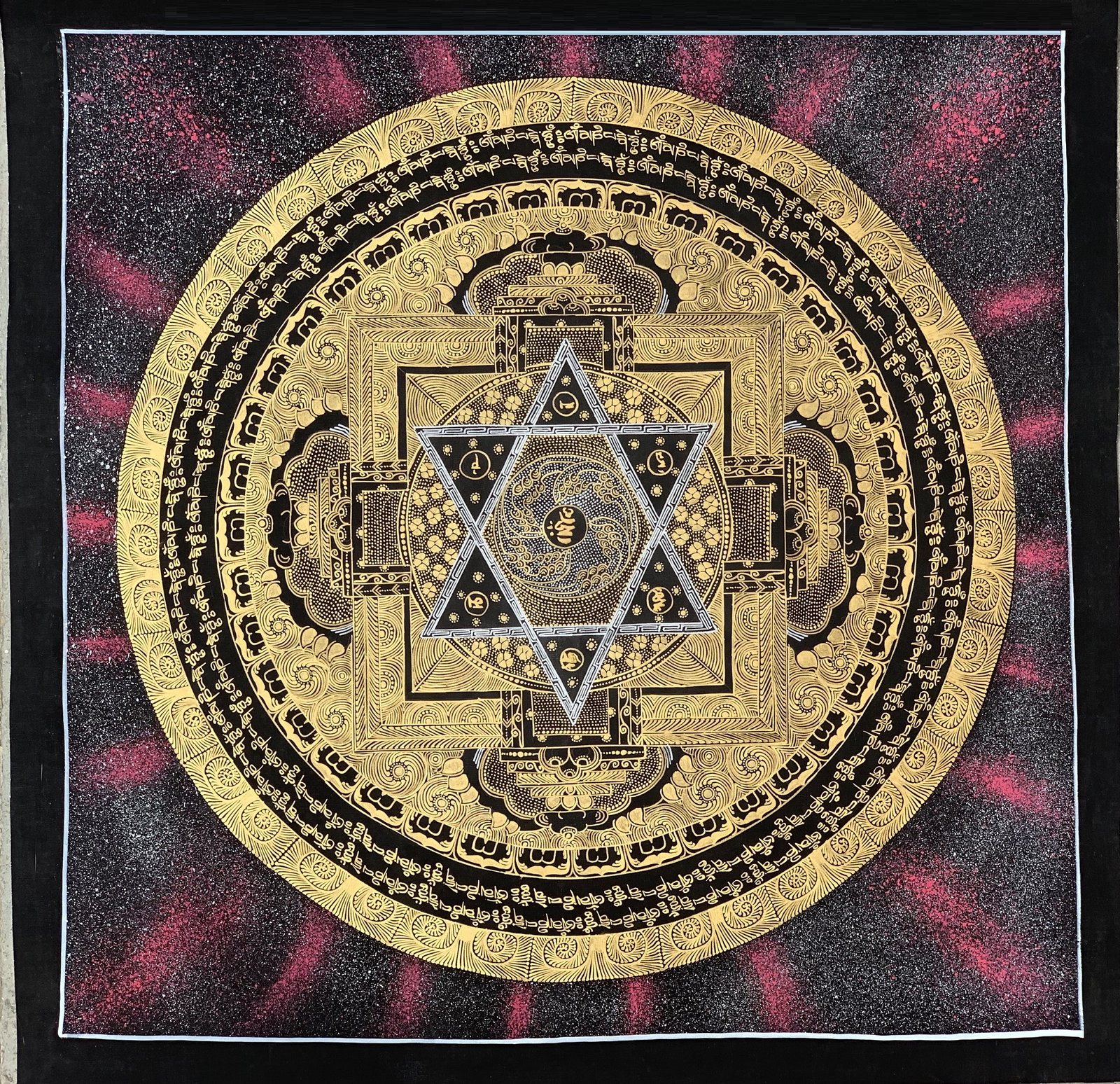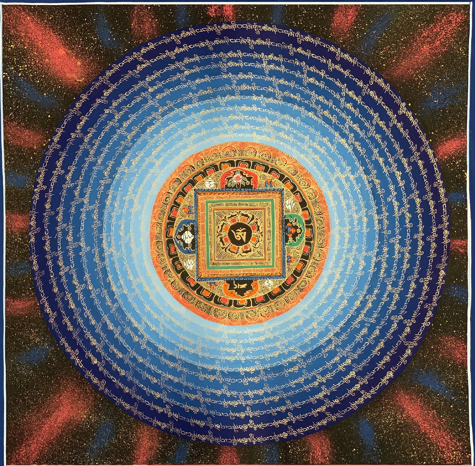 Hand-painted Mantra Mandala Thangka, Painting, Art on Canvas, 20 x 20-Inch
