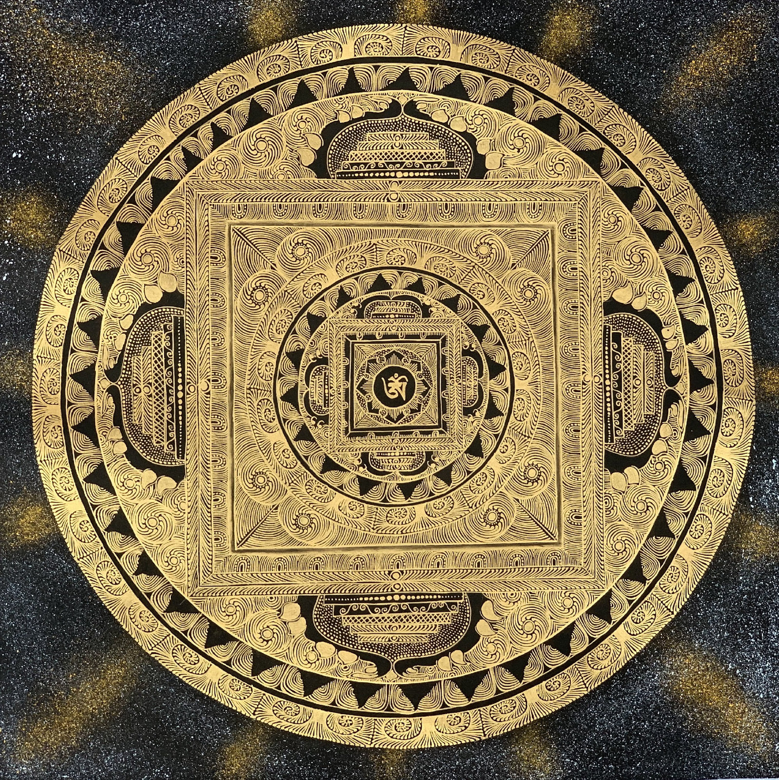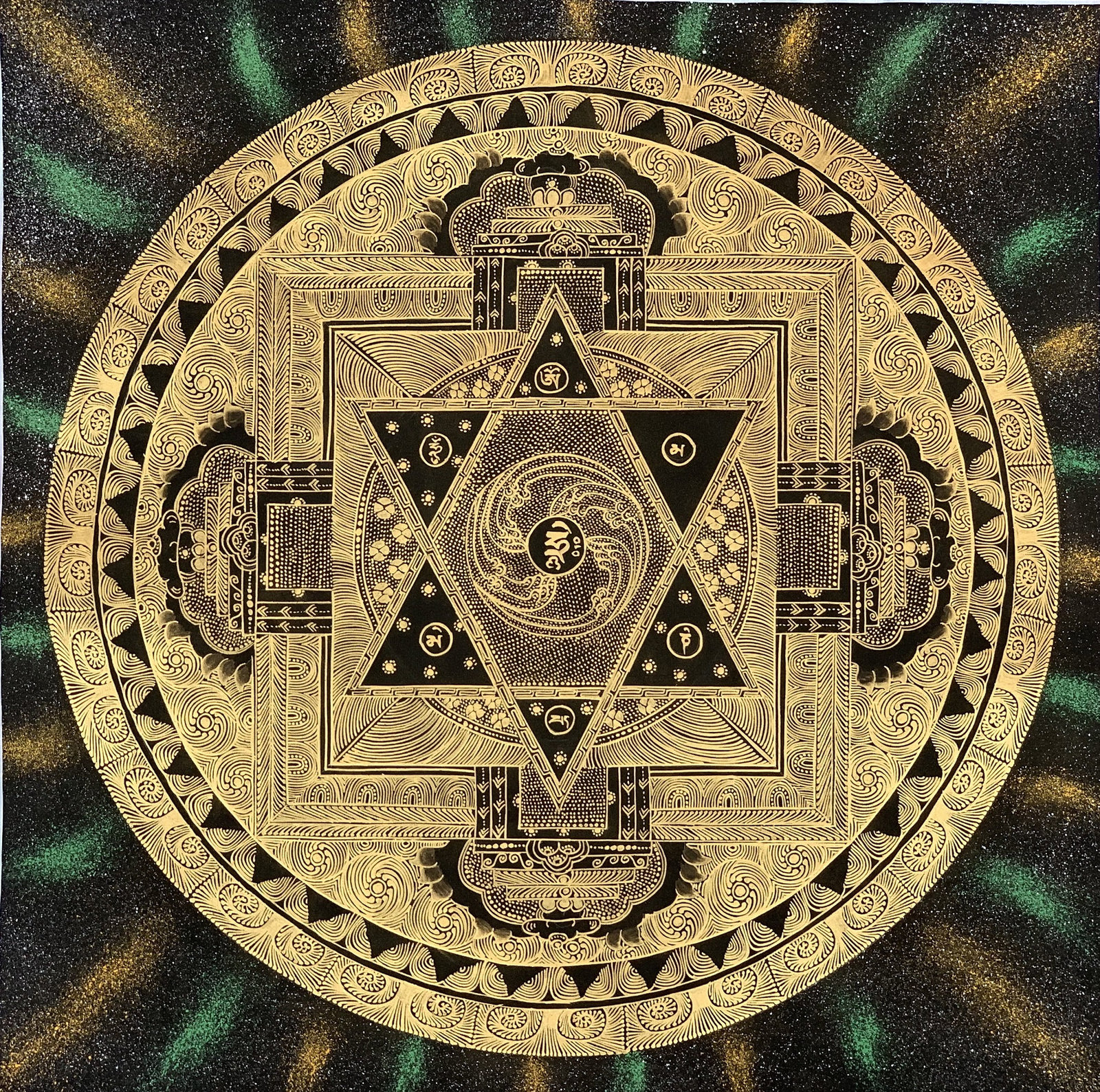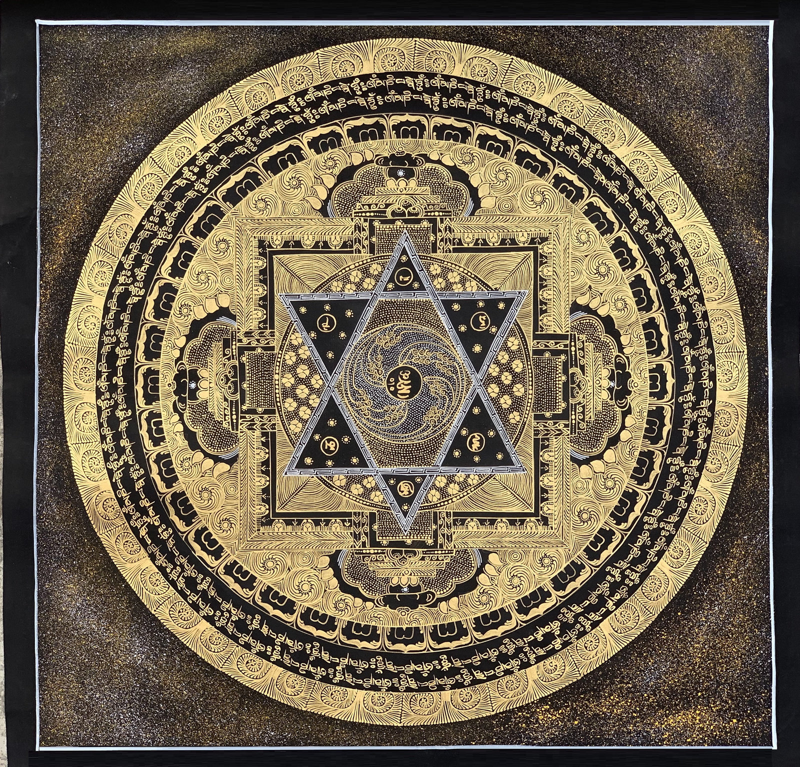 Hand-painted Mantra Mandala Thangka, Painting, Art on Canvas, 20 x 20-Inch